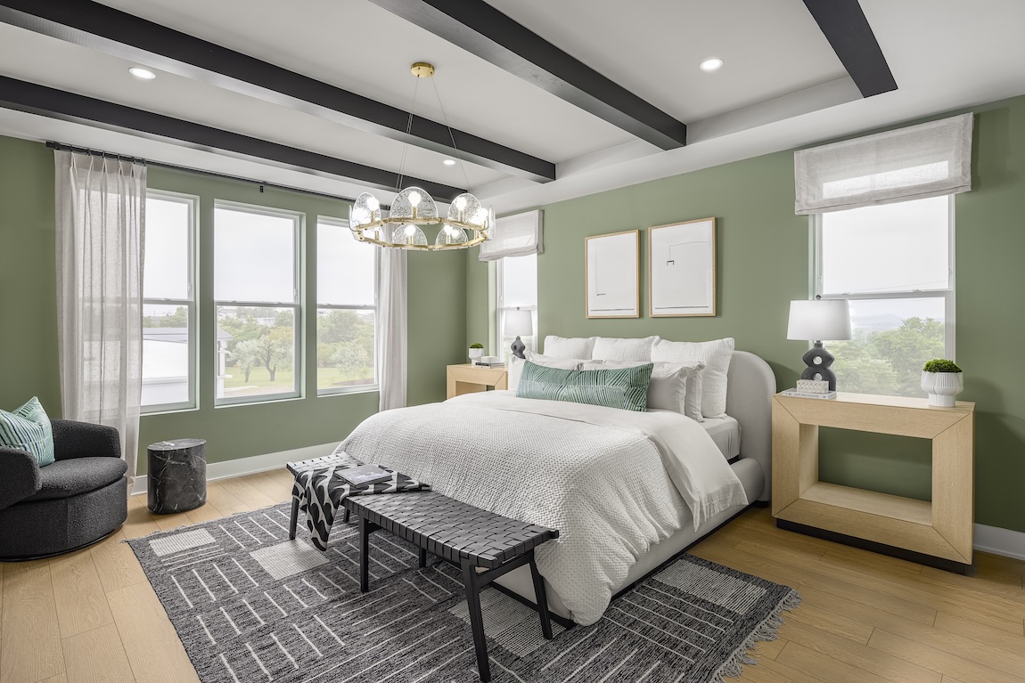 One of the best places to start decorating your guest room is the floor. A beautiful hardwood, like the hand-finished styles from Emily Morrow Home, brings warmth and texture to the room. Painting the walls in a soothing color, like Agreeable Gray SW 7029 from Sherwin-Williams, provides the perfect backdrop for a relaxing oasis.