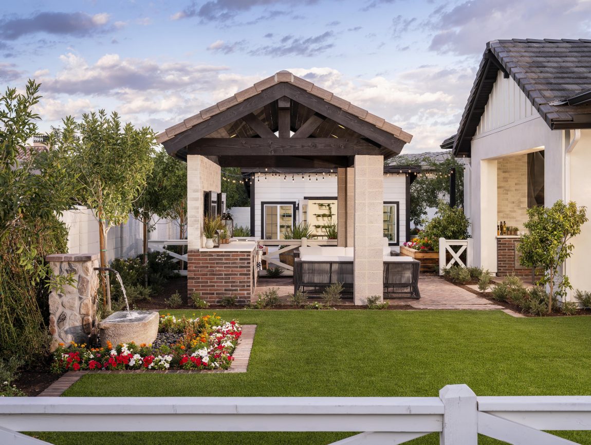 The most popular 2019 home design trends aren’t just for inside the house—the yard needs updating, too. One of the biggest landscaping trends right now is creating comprehensive open-air entertainment spaces, complete with comfortable seating, TVs, lighting, and even kitchens and bars. These outdoor living spaces will instantly upgrade your summer gatherings, and your family will probably want to spend every possible moment outside when the yard is this lush.