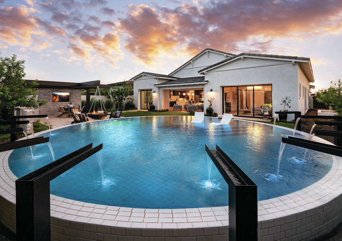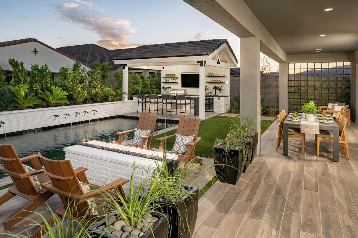 Who doesn’t dream of a cool, refreshing pool on a hot summer day? Better yet, one that’s mere steps away from your kitchen. These backyards are more water than grass, and that is entirely alright with us. Between swimming, relaxing in lounge chairs, and cooking in outdoor kitchens, you’re bound to spend more time in these backyards than you are in the homes.