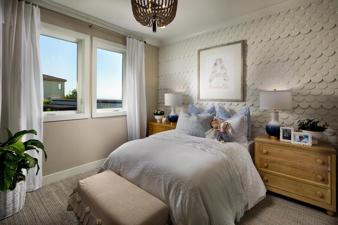 Accent walls don’t have to make a bold statement. Balancing the backdrop of your main bed wall with pleasing pastels create a sense of orderly calm.