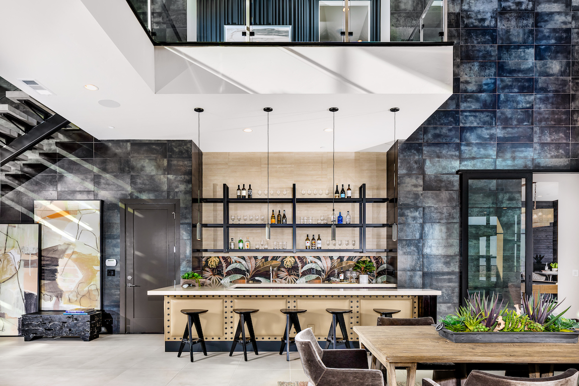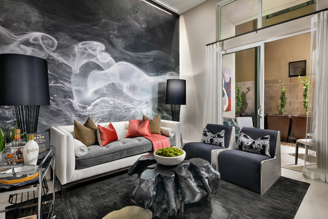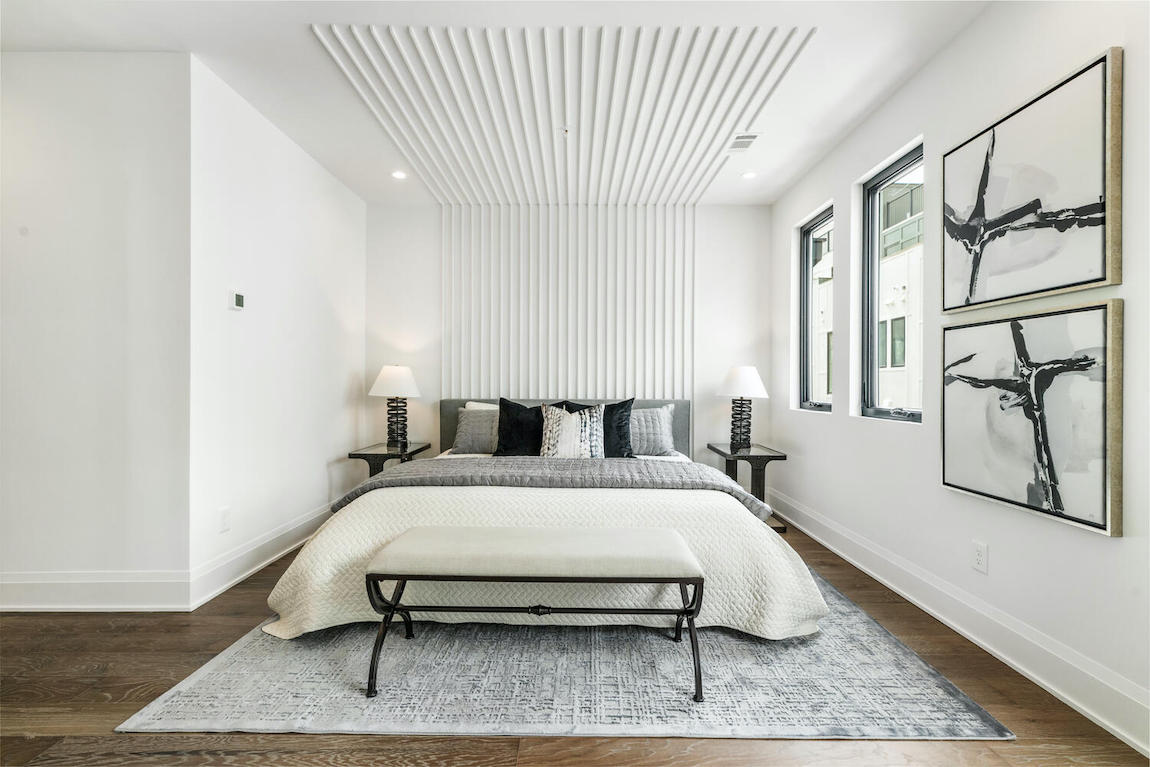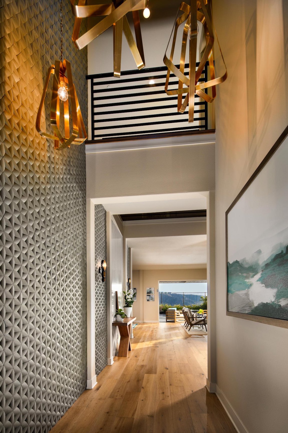A minimalistic home design makes this three-dimensional accent wall a unique and unanticipated element that is sure to catch the eye and draw attention to the architectural elements like ceiling height.