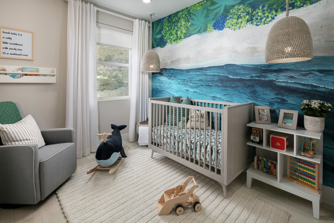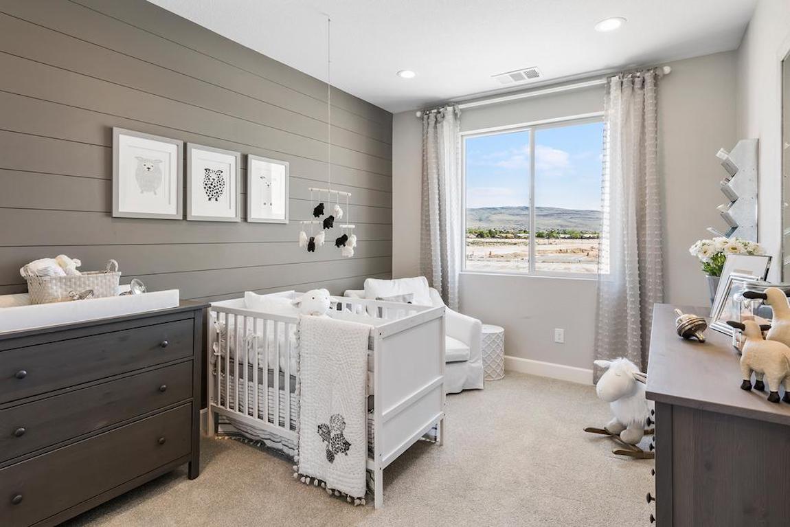 Brighten up a room with a stained shiplap accent wall. This material will add a softness to any space, including a nursery.