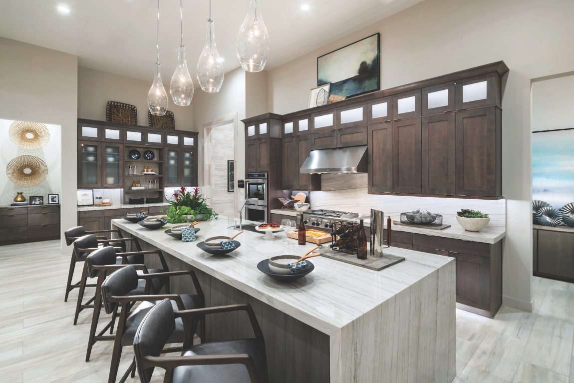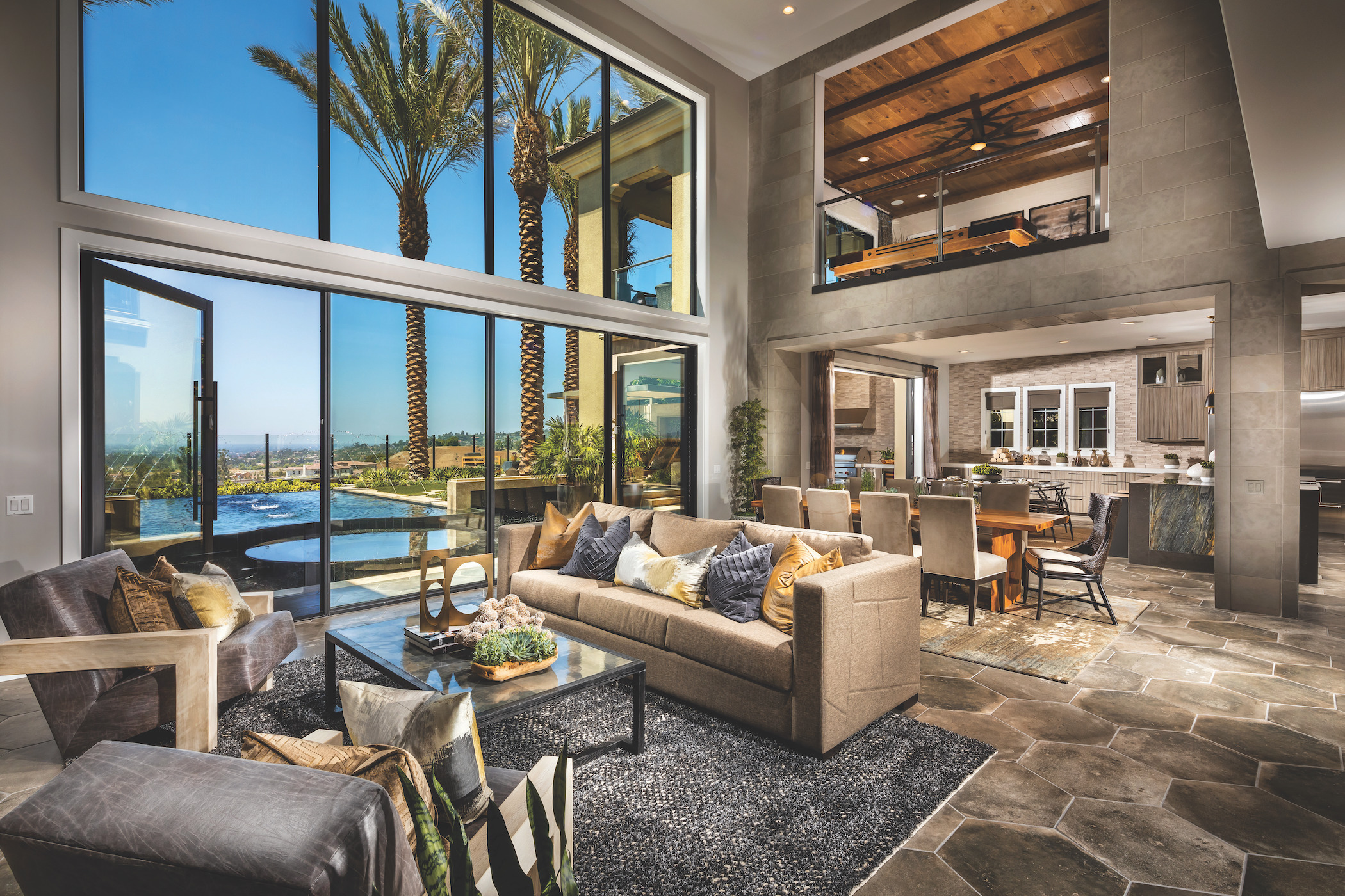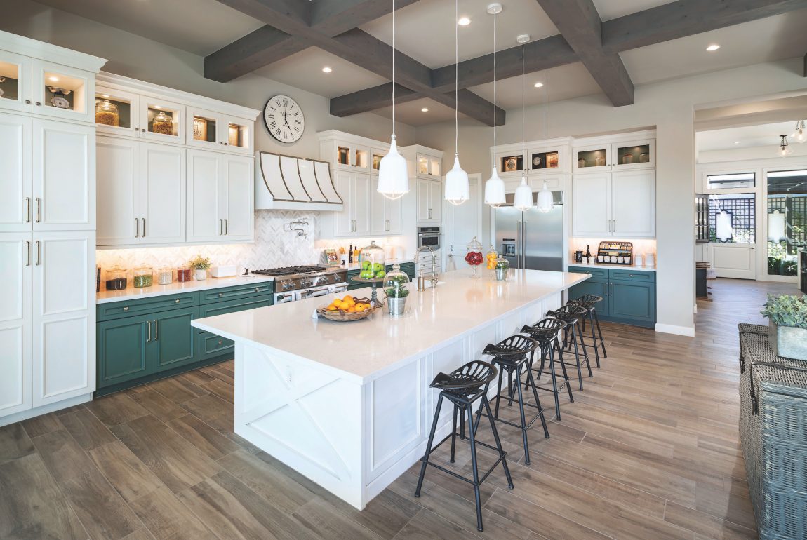 The Bianco model home in California highlights a beautifully constructed open-concept kitchen. With exquisite views, incredible outdoor living spaces, and a luxurious wine room, it’s a stunning space to host a memorable get-together.