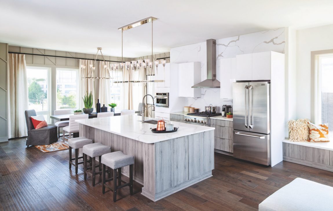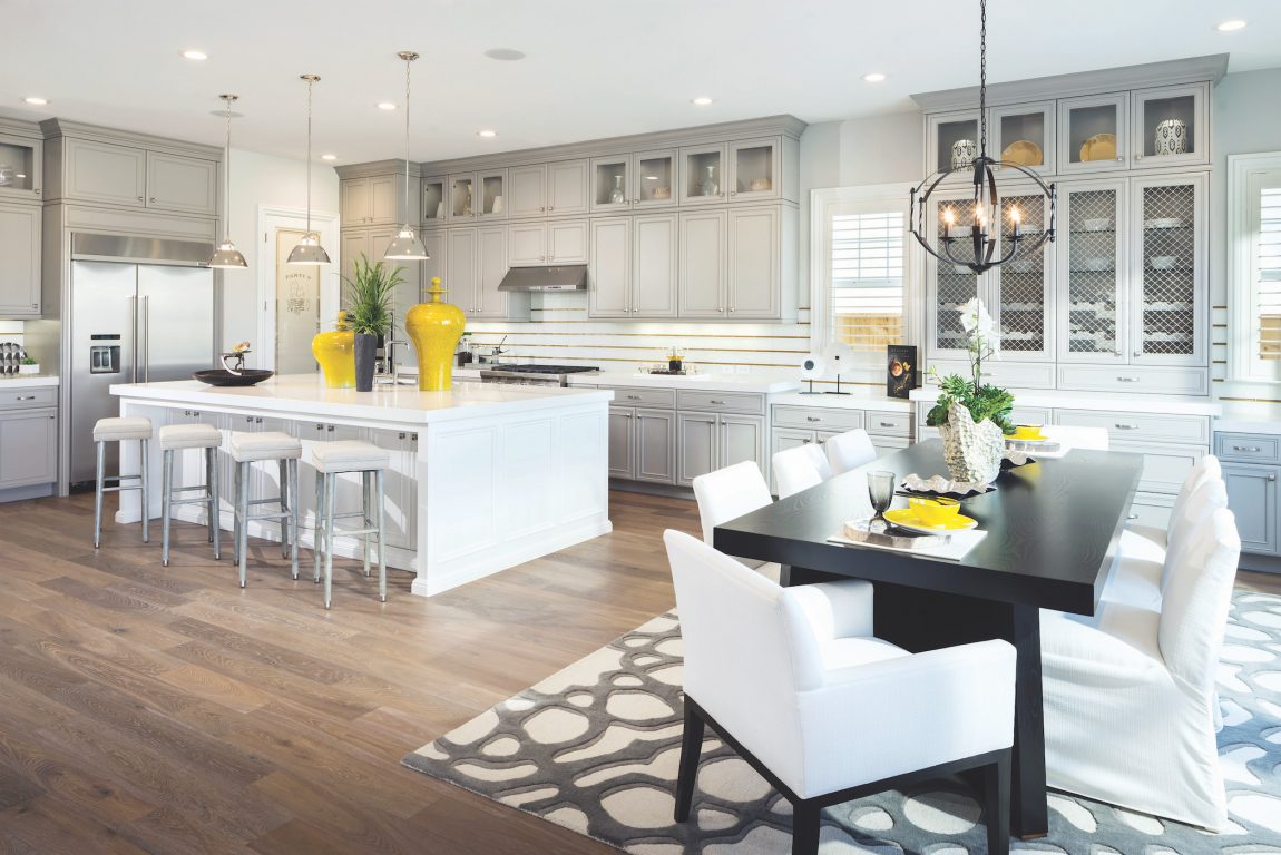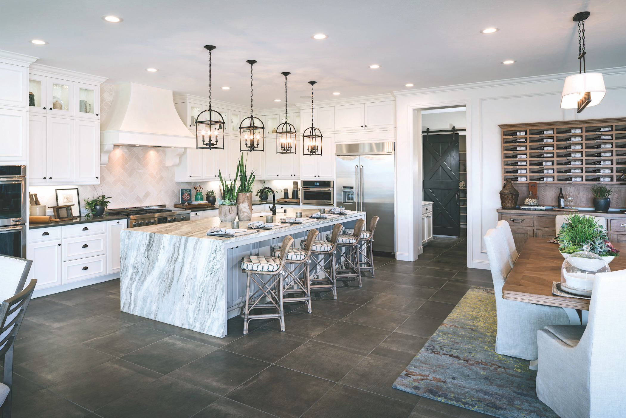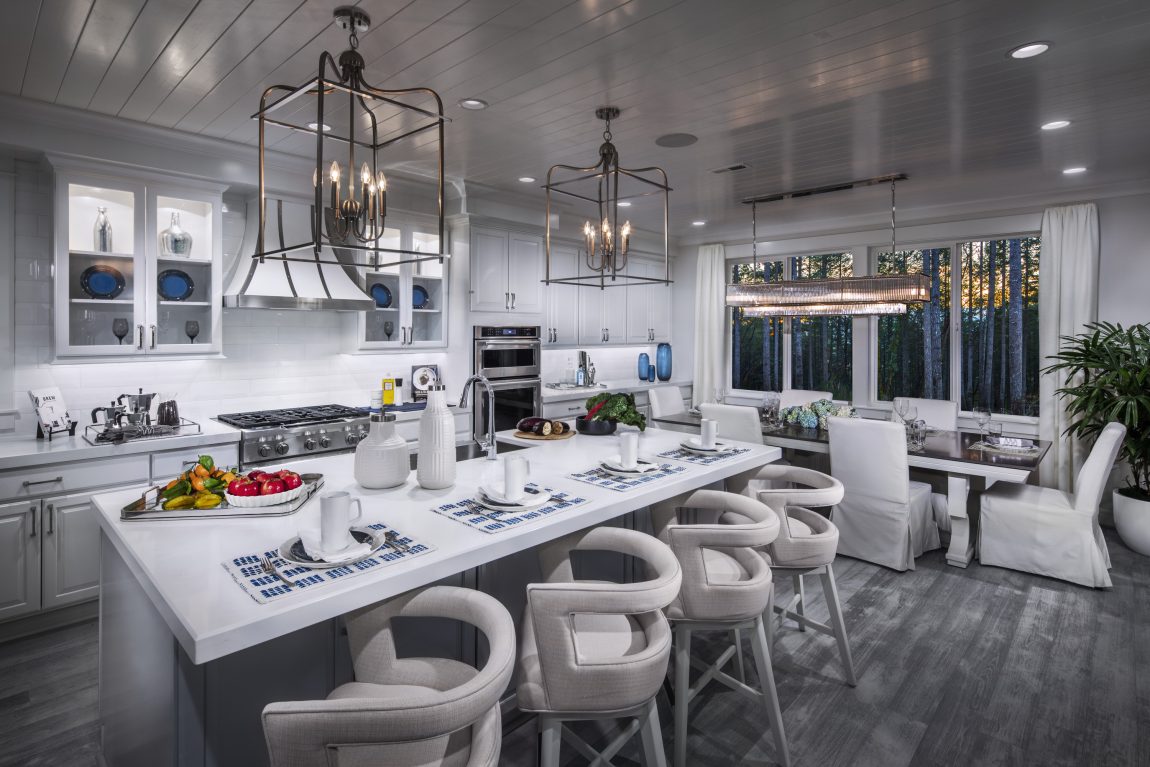 The Bianco model home in California highlights a beautifully constructed open-concept kitchen. With exquisite views, incredible outdoor living spaces, and a luxurious wine room, it’s a stunning space to host a memorable get-together.