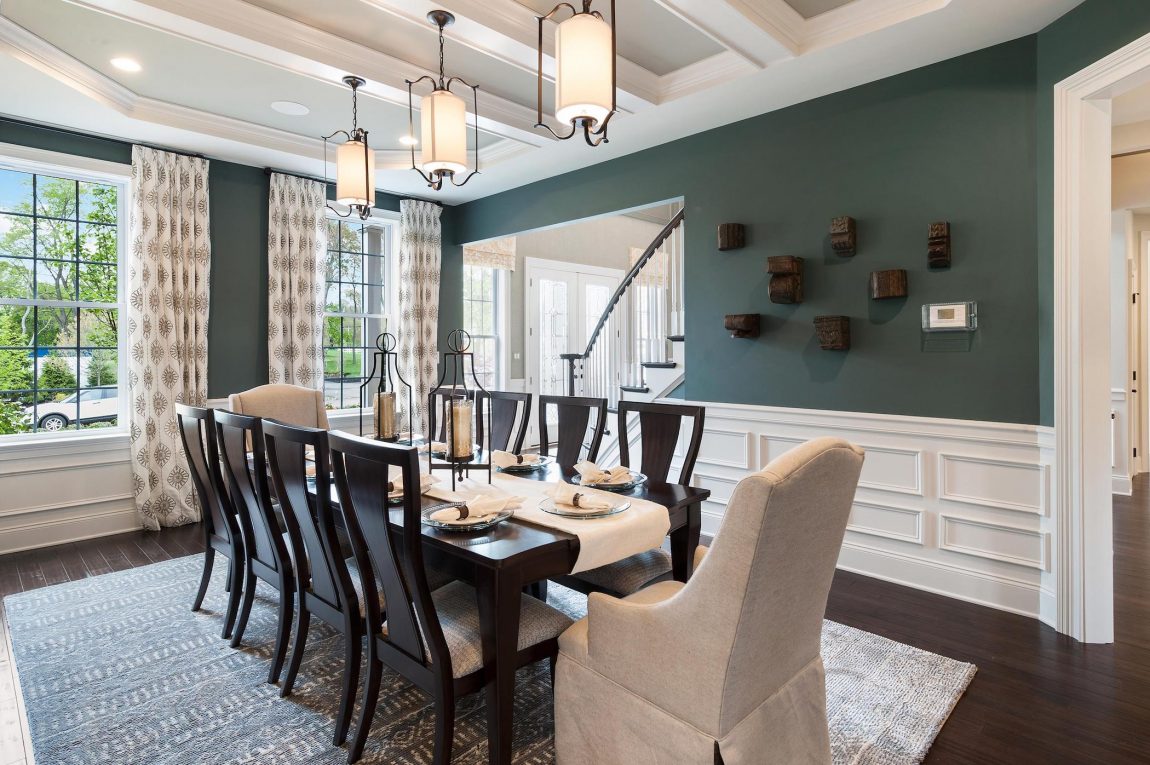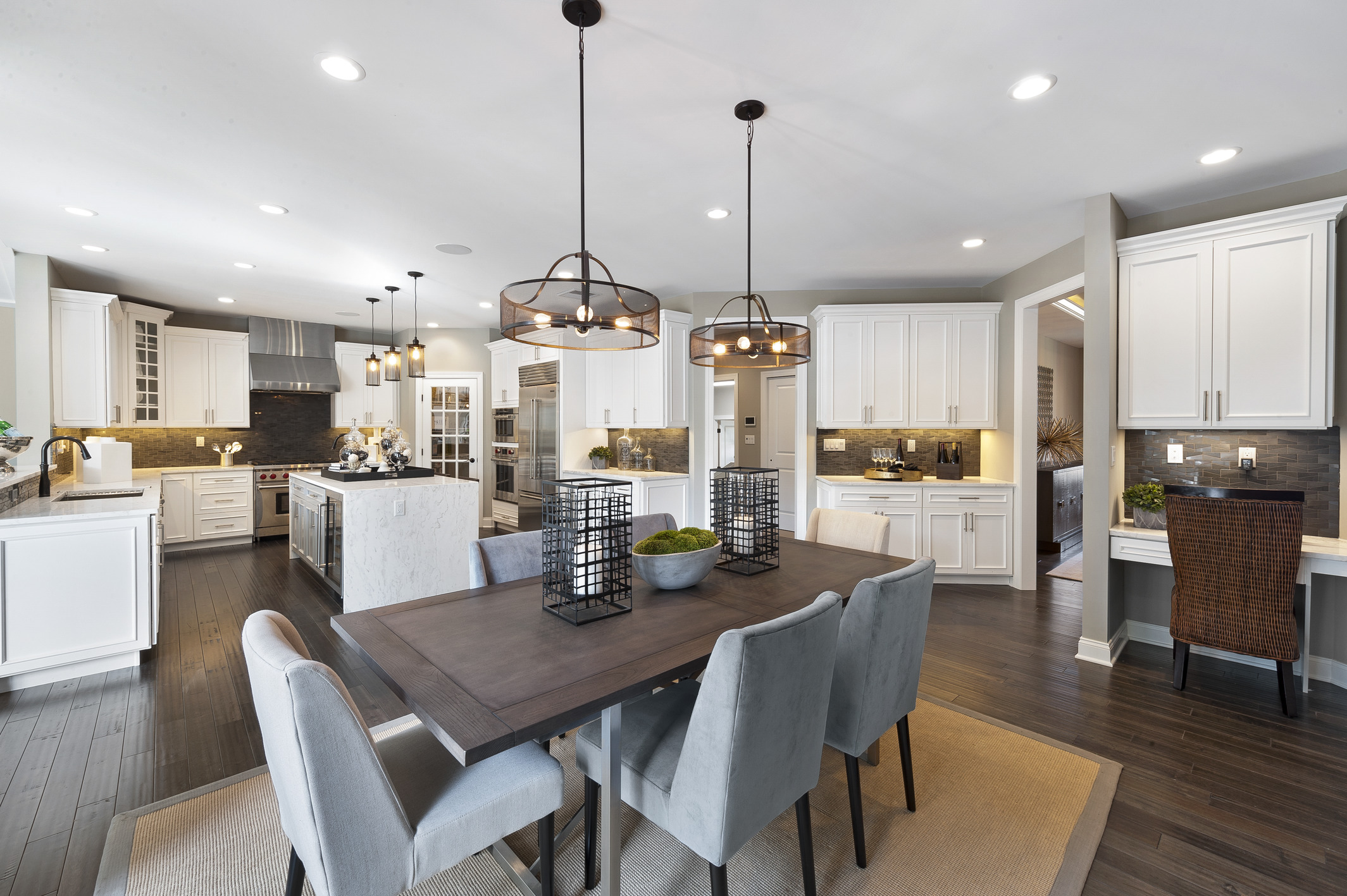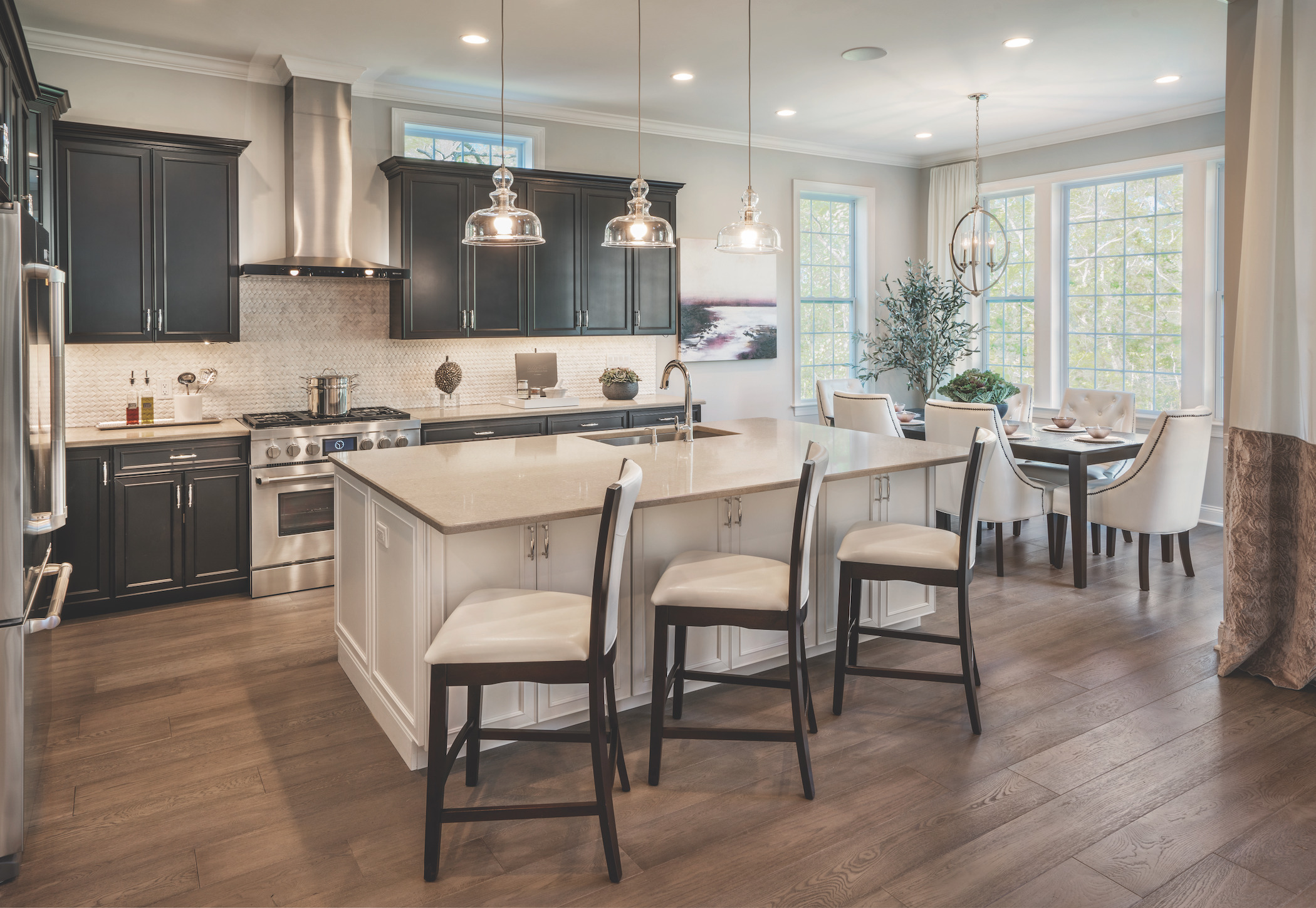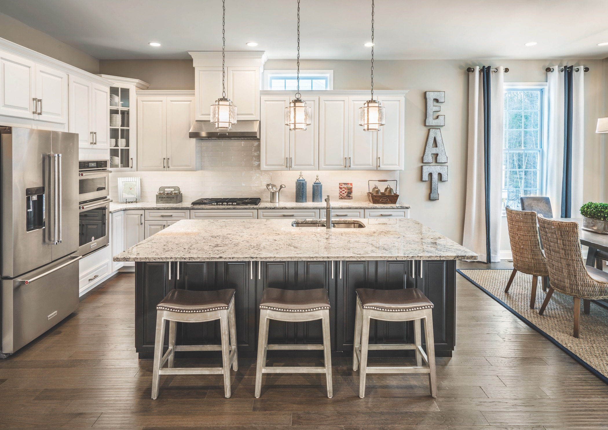 At the Henley model home in New Jersey, you’ll discover an exquisite morning room perfect for breakfast eats and a formal dining area designed to entertain. The clean, crisp kitchen is illuminated with natural lighting and accented overhead fixtures.