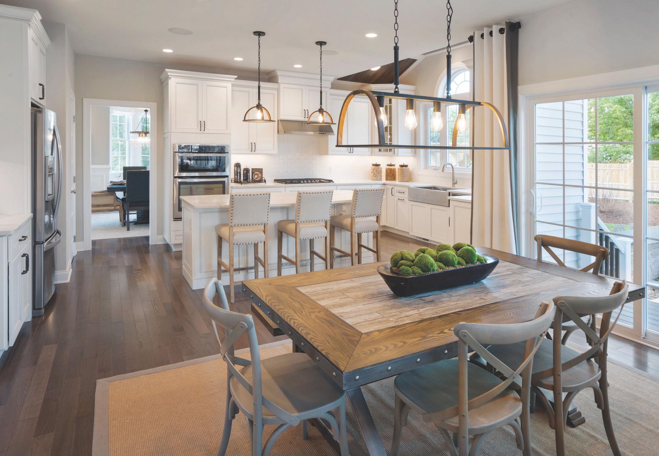 Experience a modern farmhouse design at the Rosslyn model home in Maryland. It showcases an open-concept family room with easy access to the inviting breakfast nook. Cook up culinary creations with ease utilizing both a gourmet kitchen and prep kitchen.