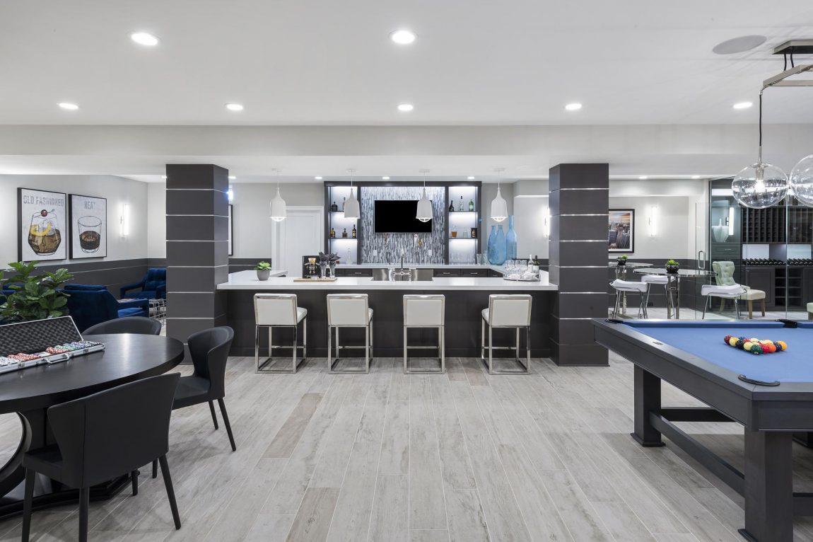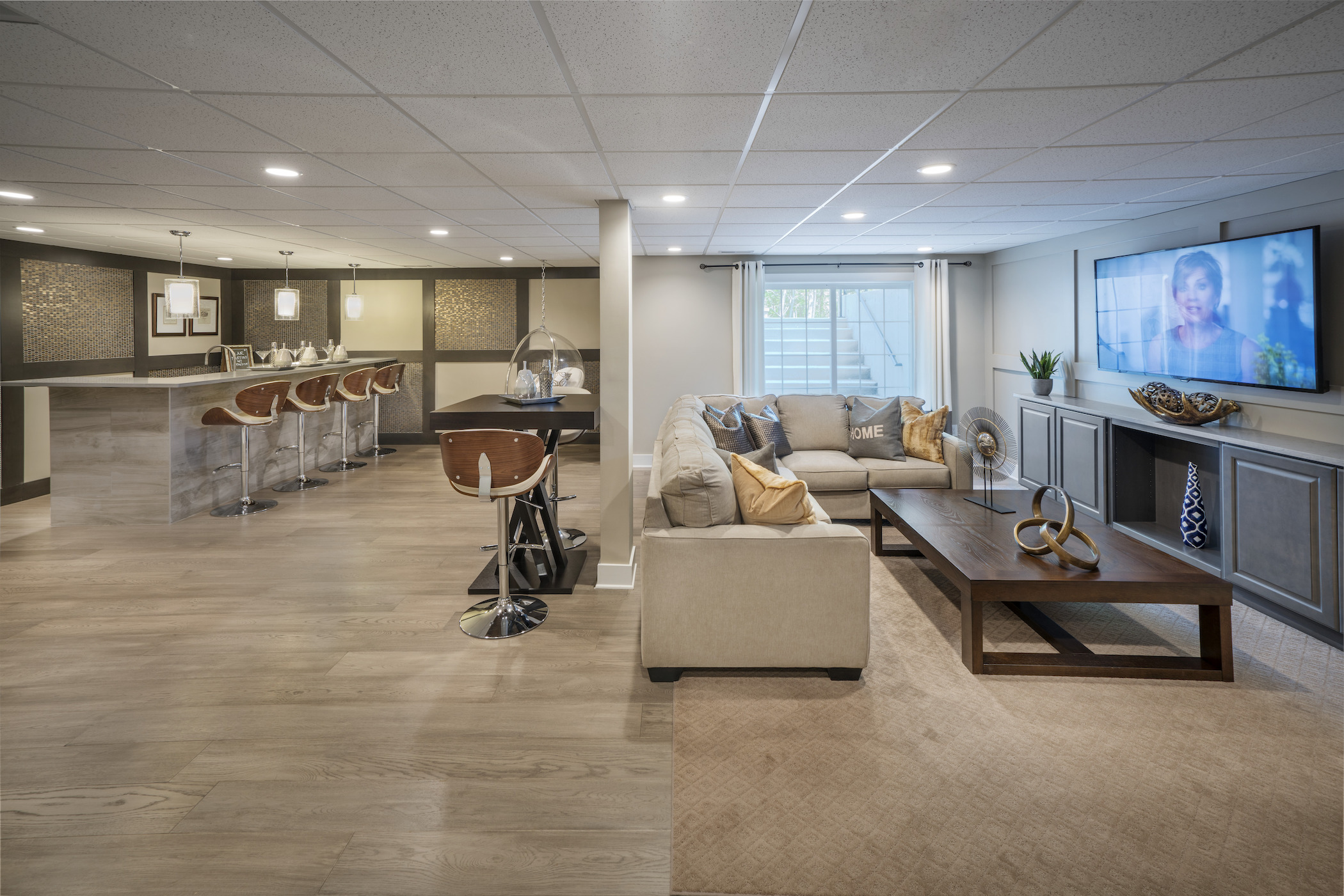 The Henley model home in New Jersey showcases an exquisitely finished basement perfect for entertaining. Enjoy a fun game of billiards, watch the game at the bar, or even have a wine tasting with friends and family.