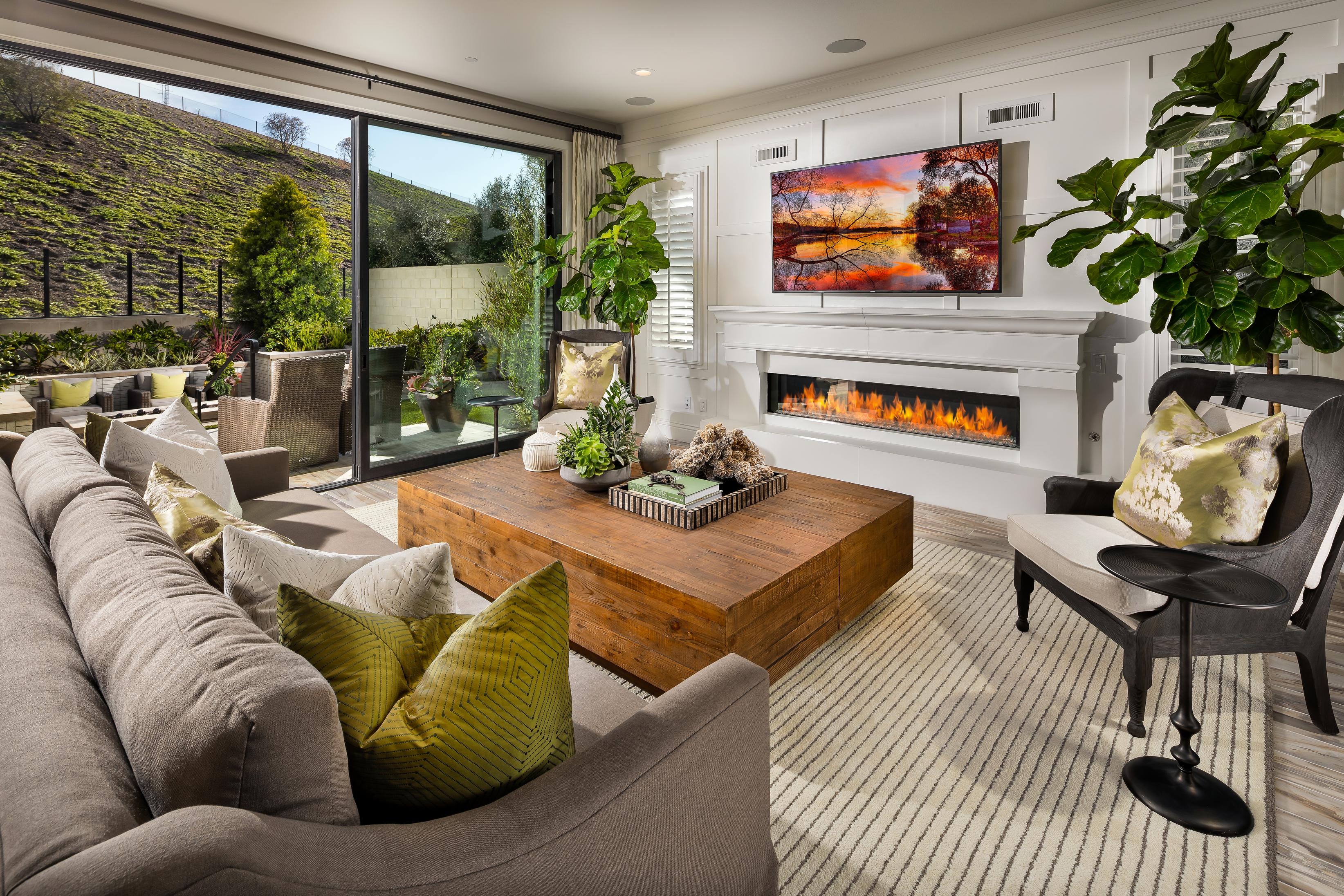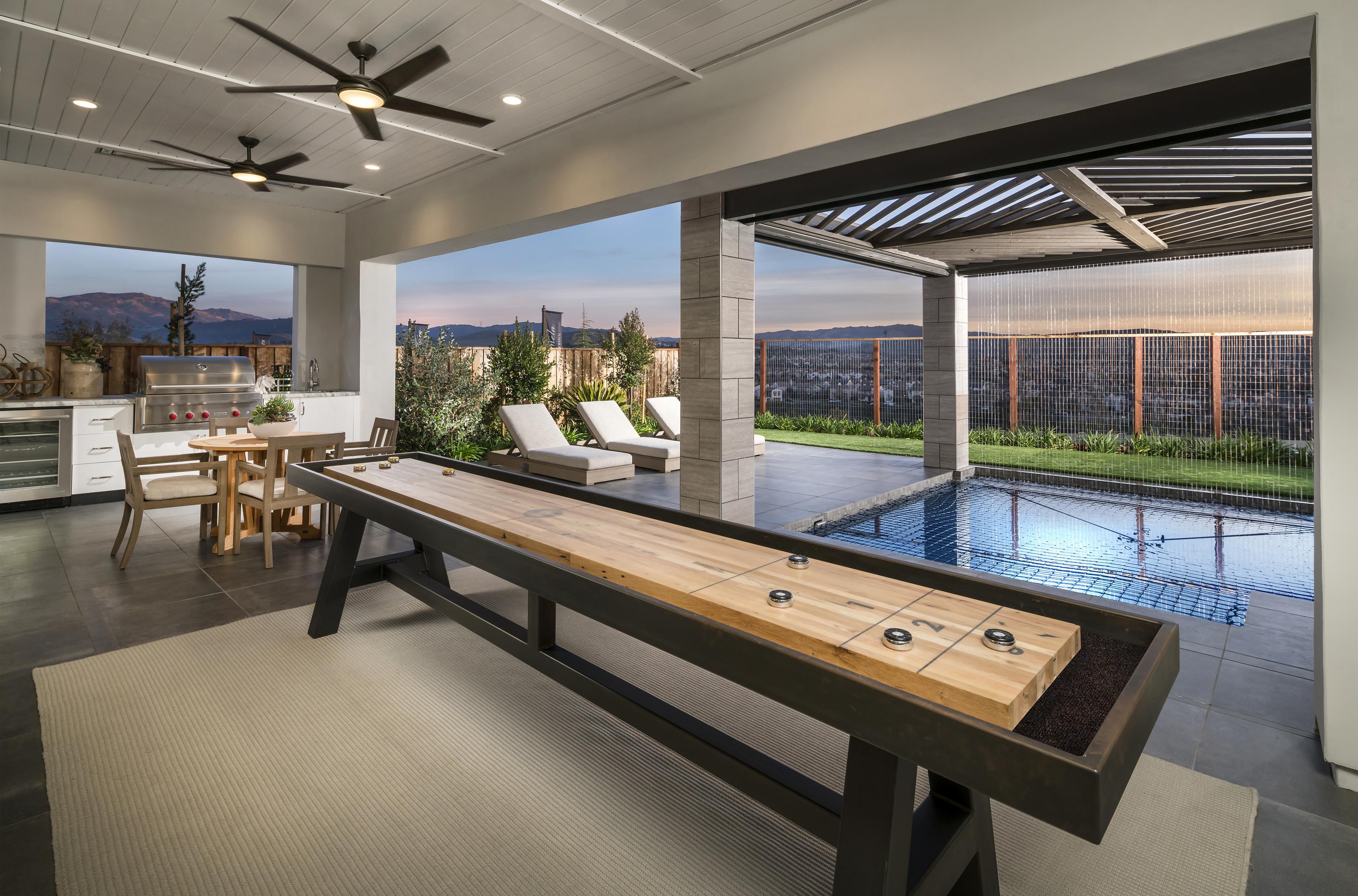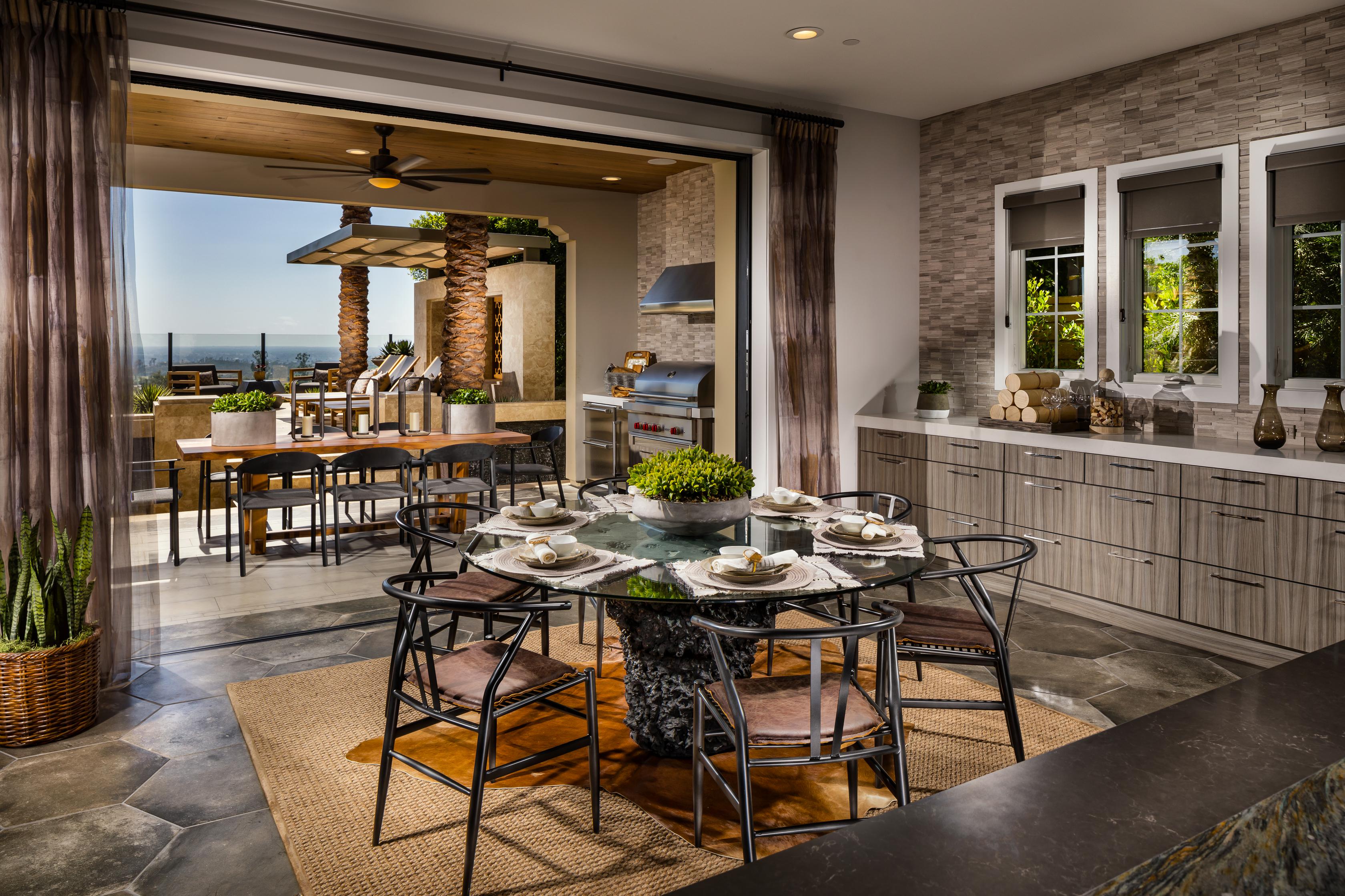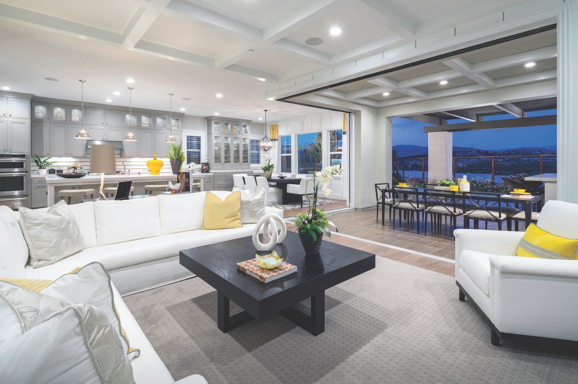 Comfortably refined, the Prado home design from the Alita at Gale Ranch community boasts a beautiful embellished ceiling with elegant furnishings and indoor-to-outdoor living spaces.