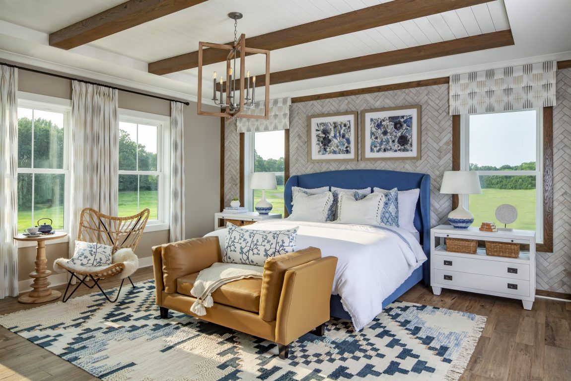 The Harper model home in Virginia exemplifies modern elegance, showcasing a contemporary kitchen with a sophisticated breakfast nook, a sleek family room, and a luxurious sitting area.
