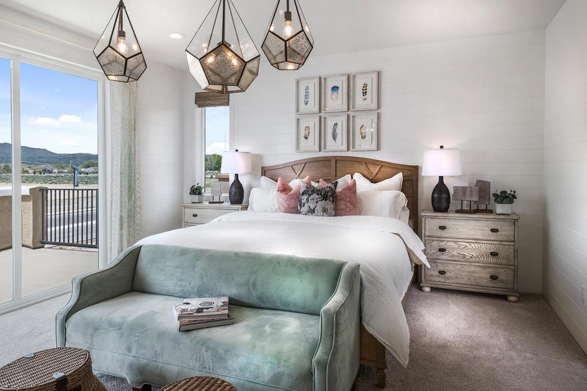 Combining natural lighting with clean lines, wood finishes, and soft textures, the Gaffney creates a calming aura throughout its modern farmhouse design.