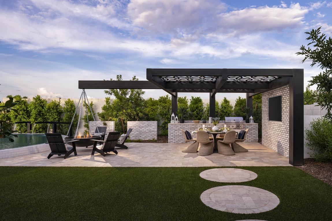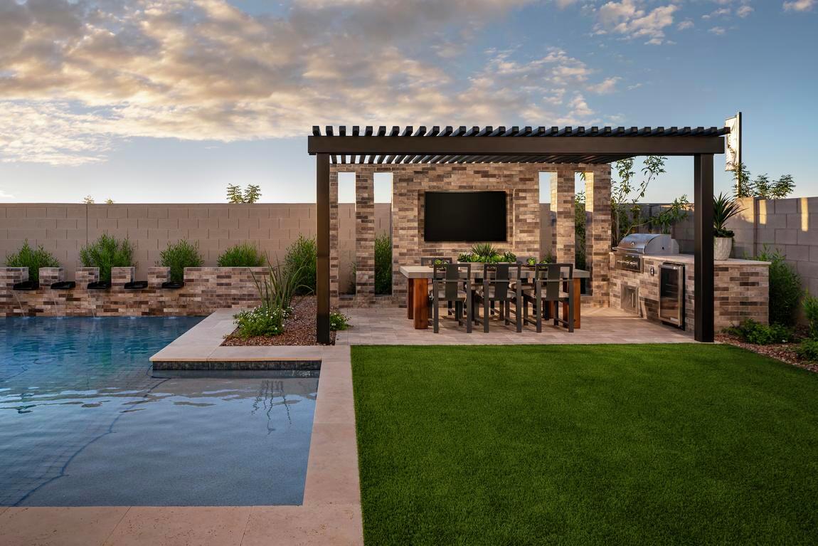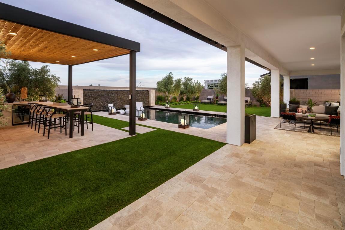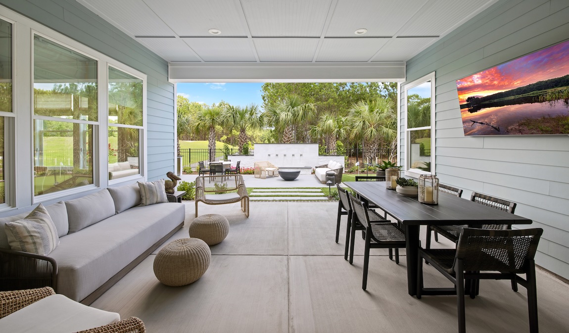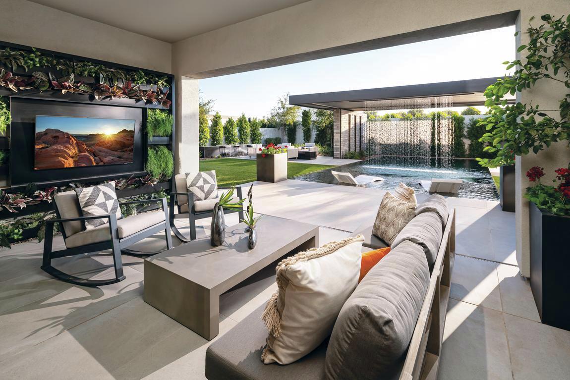 18. Kick back for an exciting game in this serene and spacious entertainment indoor-outdoor living area