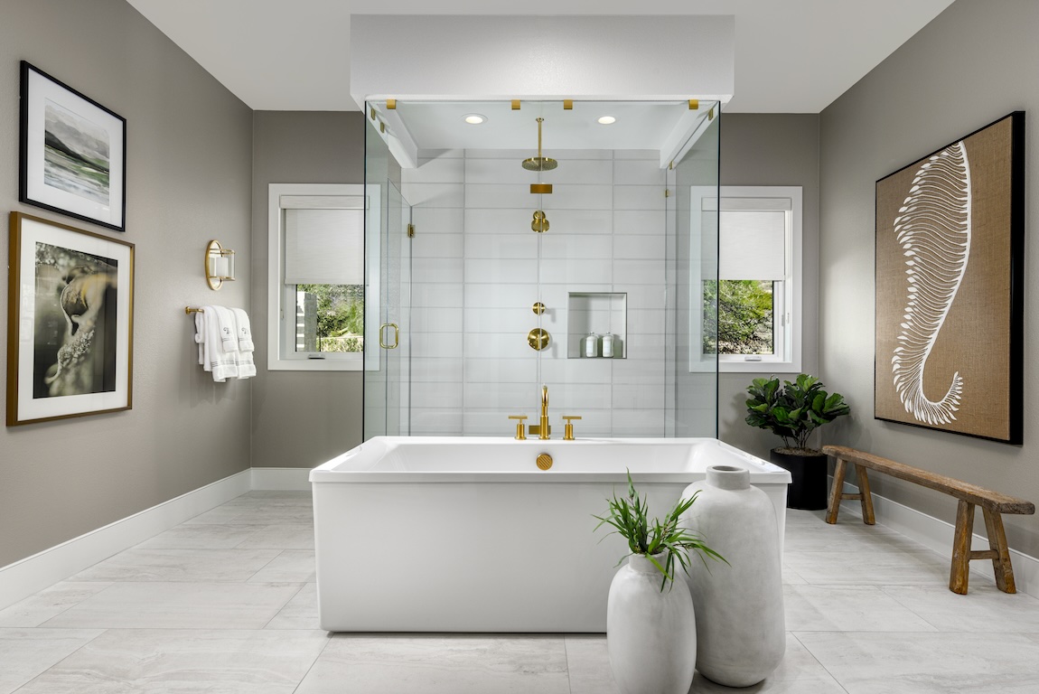 Experience the luxury of bold, beautifully designed bath fixtures that instantly elevate your home – from touchless sink technology in the powder bath to waterfall showers and freestanding tubs in the primary bathroom suite. With a wide variety of versatile and stylish designs, Kohler offers the perfect finishes for your luxury Toll Brothers home design.