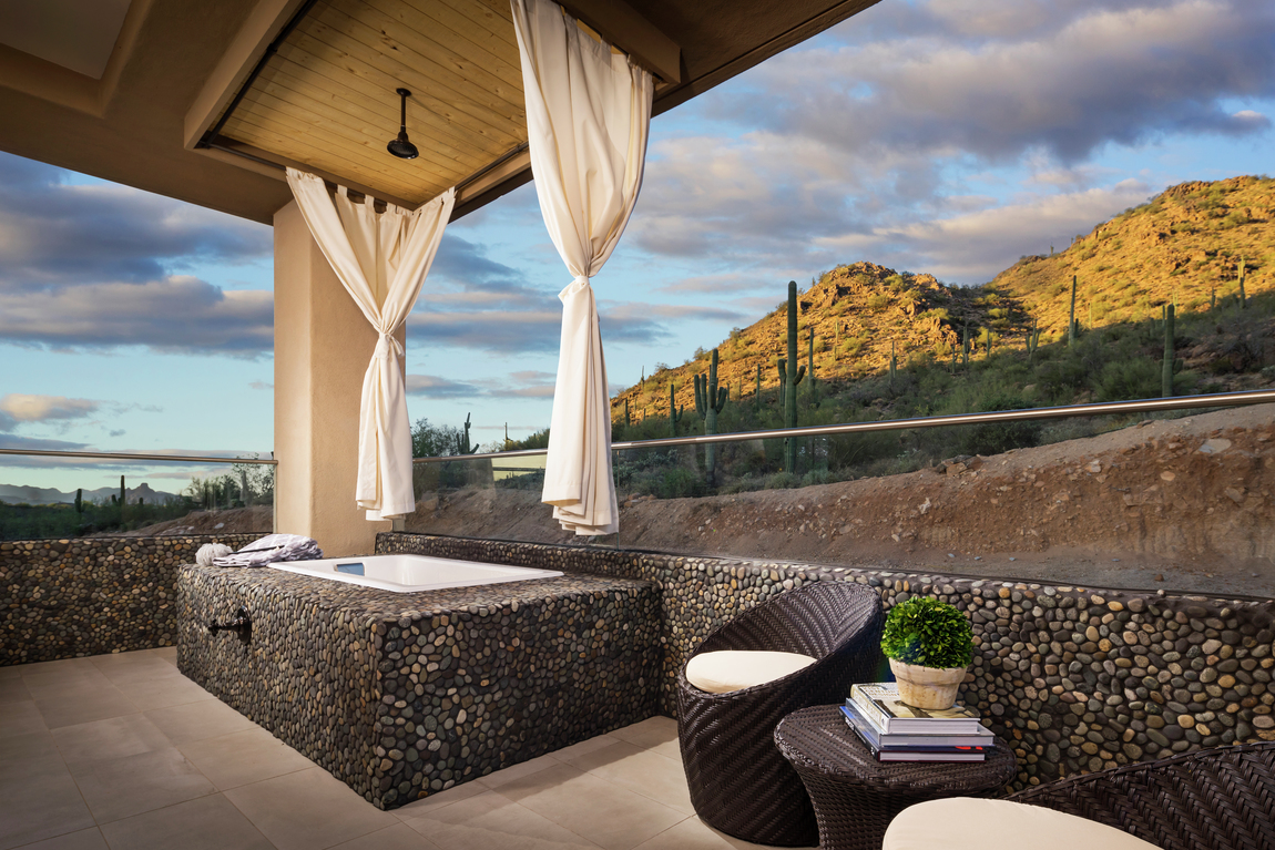 While indoor baths can be extremely relaxing, there’s nothing quite like the serenity of soaking in an outdoor bath. Undisputedly luxurious, this design is generally a secondary bathing option for homeowners who like the unexpected and want to enjoy their outdoor living space to the fullest.