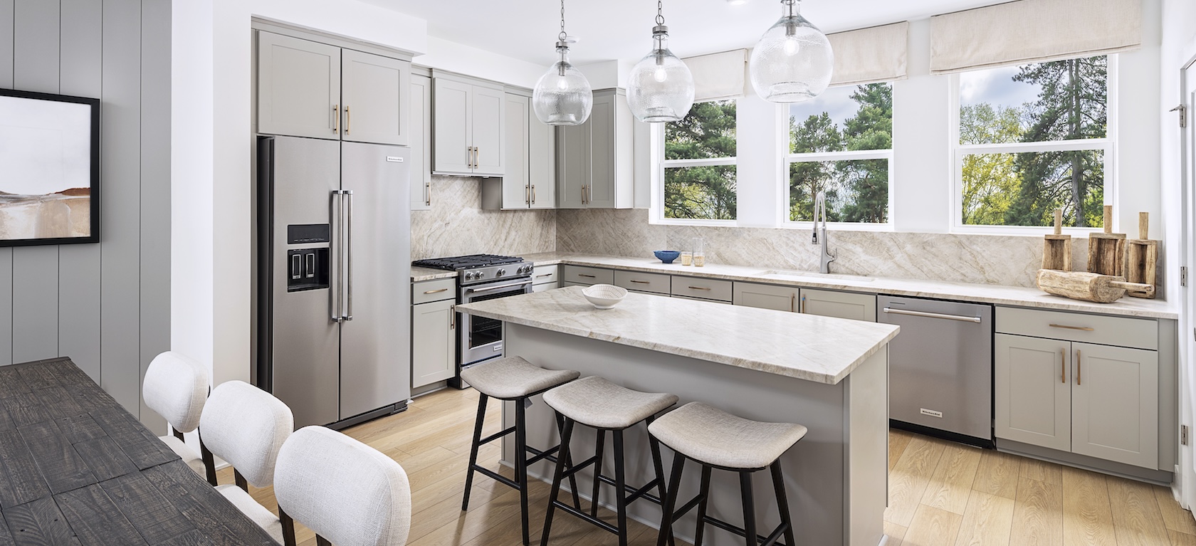 The thoughtfully crafted Beckham Place at Morningside model home features innovative architecture and stunning interiors, showcasing the perfect blend of luxury and contemporary design. Toll Brothers offers new four-story luxury townhomes at Beckham Place at Morningside, with 3 to 4 bedrooms, 3.5 baths, 2-car garages, and rooftop terraces. The modern home designs range from 1,768 to over 2,044 square feet of luxury living space.