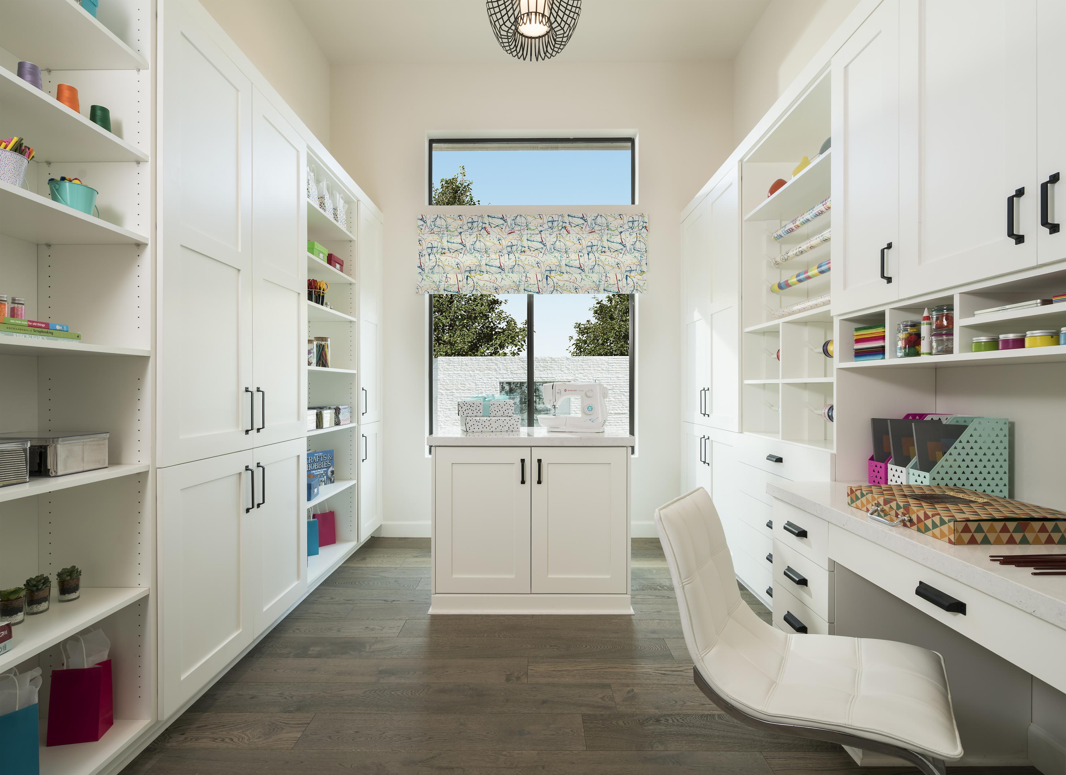 Start by identifying the functions you want to accommodate. Will the room be a dedicated space for crafting, or will it double as an office or guest room? Some crafts, like knitting, can go where you do and may just require storage for tools and supplies. Other crafts benefit from large spaces to spread out, making it easier to stay organized and quickly clean up. Consider these pointers for designing a functional crafting space:
