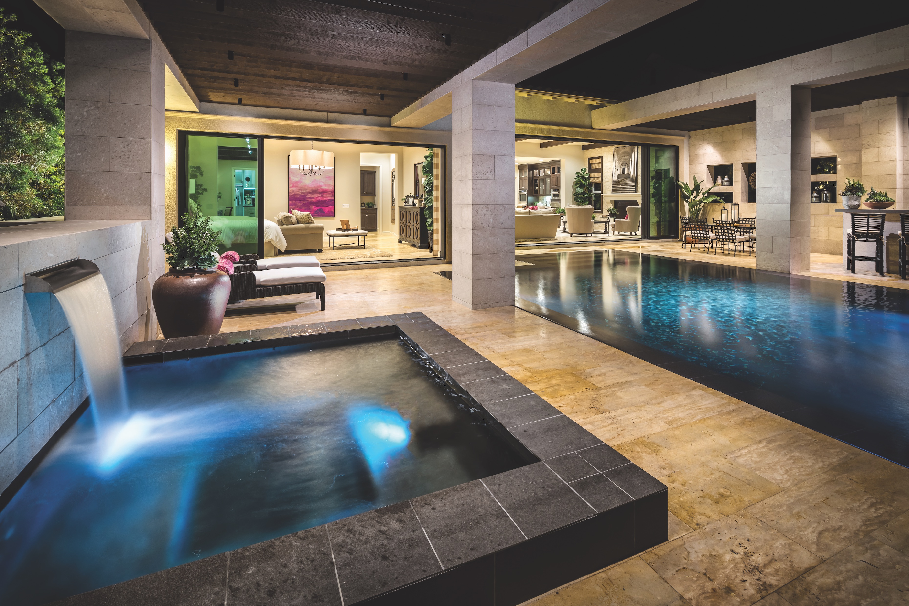 If you have a narrow lot, a lap pool is an ideal solution. Not only does it maximize the square footage of your space, it provides a great way to stay in shape. It can be built in the sun or shade and can be turned horizontally or vertically to fit tight spaces. Lighting your lap pool at night highlights its beauty and magically turns your small backyard into an oasis.