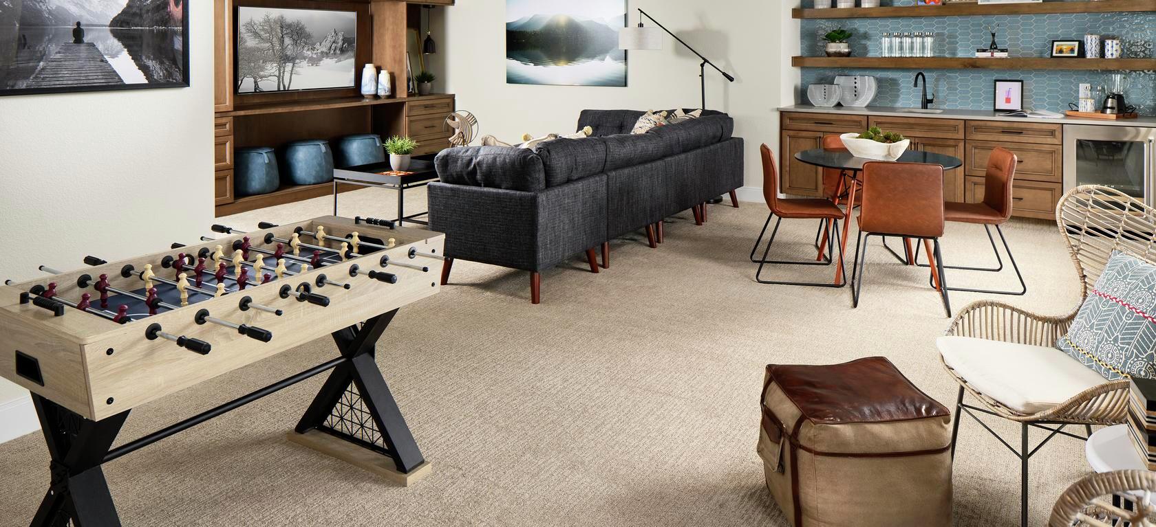 Transform your basement into a functional space unique to you and your family’s hobbies and interests. Design an exclusive work area, a spot to cheer on your favorite sports team or the ultimate entertaining setup. A finished basement adds a lot of extra living space and can increase the value of your home. In fact, US News lists refinished basements in its “10 Home Renovations with the Best ROI,” which they state as being 69% of the project price. Best of all, you’ll enjoy the time you and your family get to spend in the new addition. Read on for ideas on how to finish a basement that’s sure to be a fun, useful, and comfortable space.
