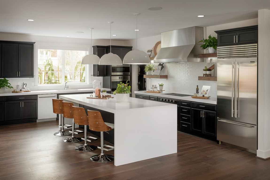 Quartz is designed to look like many other surfaces while maintaining all the virtues of quartz – like durability and lower maintenance. Caesarstone’s concrete designs have the look and feel of concrete and their supernatural designs have the look of marble without all the care and maintenance concerns typically associated with marble. In terms of patterns, quartz is highly versatile, incorporating a wide array of designs and styles. Quartz can have a lot of movement or very little depending on your design preferences. It can be solid in appearance, designed with flecks similar to travertine or come with light or heavy veining and marbling. It is the perfect combination of technology and nature. Scroll through the various quartz countertop colors below and draw inspiration from a few of our most stunning kitchen designs.