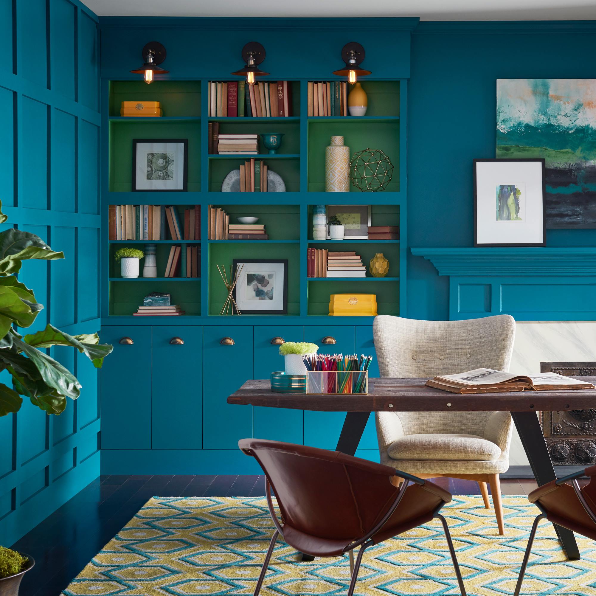 Blues evoke a multitude of moods and associations depending on hue, shade, and application. Despite this variety, they are universally perceived as intelligent, honest and interesting—making blue the most beloved color worldwide. Oceanside’s multi-dimensional look could create a welcoming statement as a lively color for a front door. This green-meets-blue tone can also boost creative thinking and clarity of thought in a home office, or invite meditation and introspection in bedrooms or reading nooks.