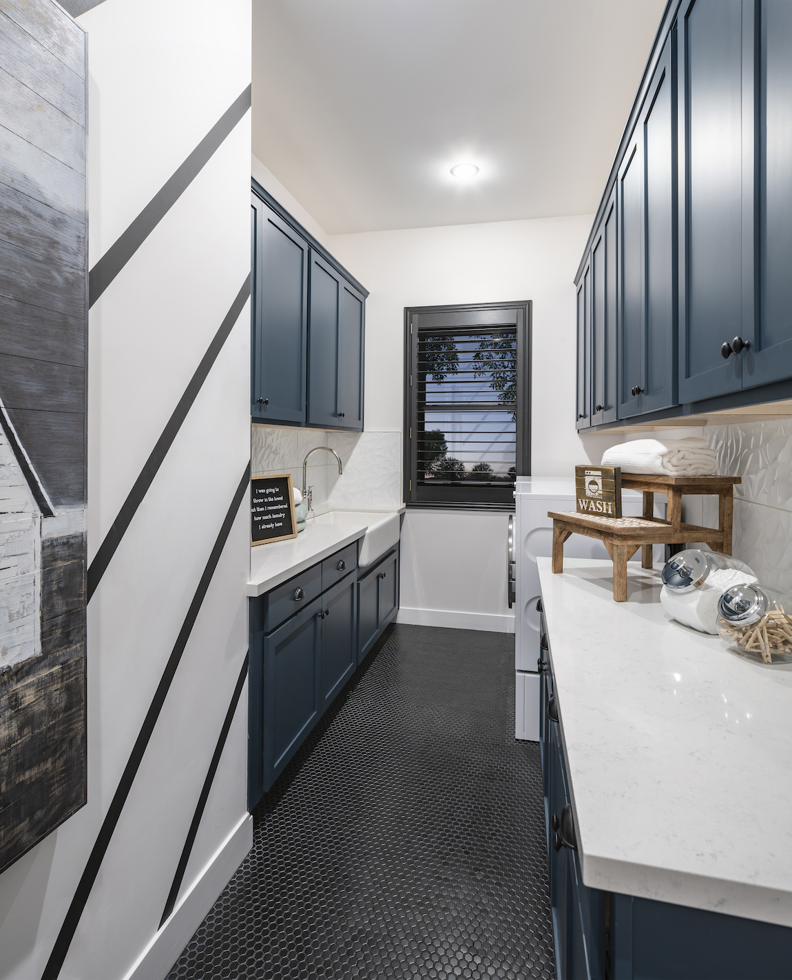 Naval is extremely versatile and approachable. Although dark, Naval has a calming quality that induces a sense of comfort at home and feel almost neutral. Kitchens tend to be an area where families congregate, so incorporating blue is a great way to create a relaxing and welcoming environment. Painted cabinets in Naval pair well with light counters and warm wood tones, while an icy cross between blue and gray, like Misty SW 6232, create the perfect cool-tone balance.