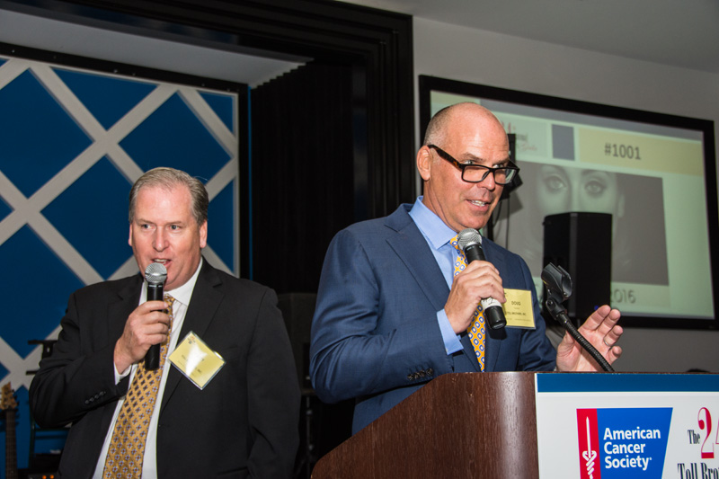We were lucky enough to host Gary Ready, CEO of American Cancer Society, and his team for the evening. Gary Ready in turn introduced our guest speaker, Dr. Alexander Perl – a leading researcher at the Hospital at the University of Pennsylvania, specializing in finding a cure for leukemia and other blood cancers. After Dr. Perl, the guests were treated to Toll Brothers’ live auction team of CEO, Doug Yearley and CFO, Marty Connor – entertaining as always.