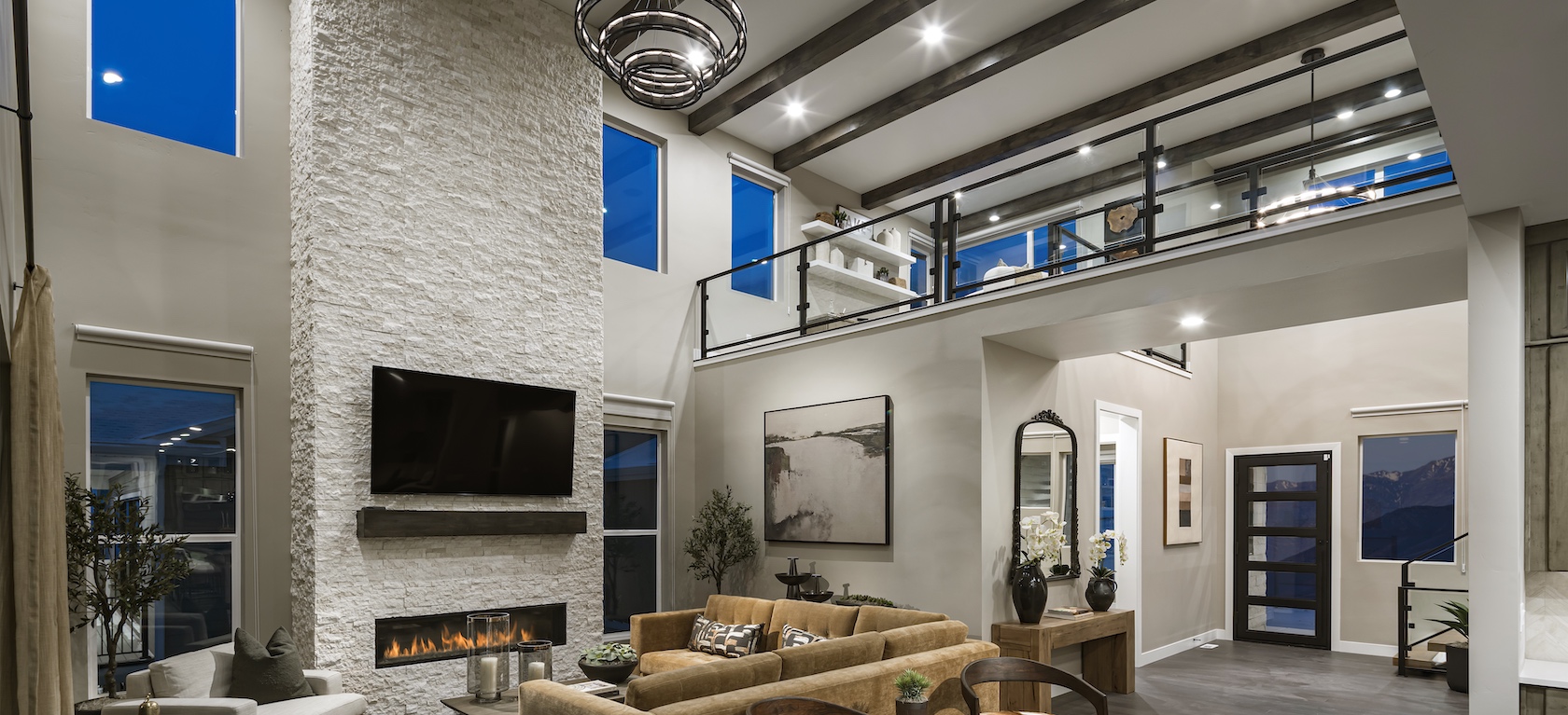 The highly anticipated Fairbanks Modern model home features distinctive architecture complemented by stunning interior design and merchandising, showcasing the perfect blend of luxury and modern design.