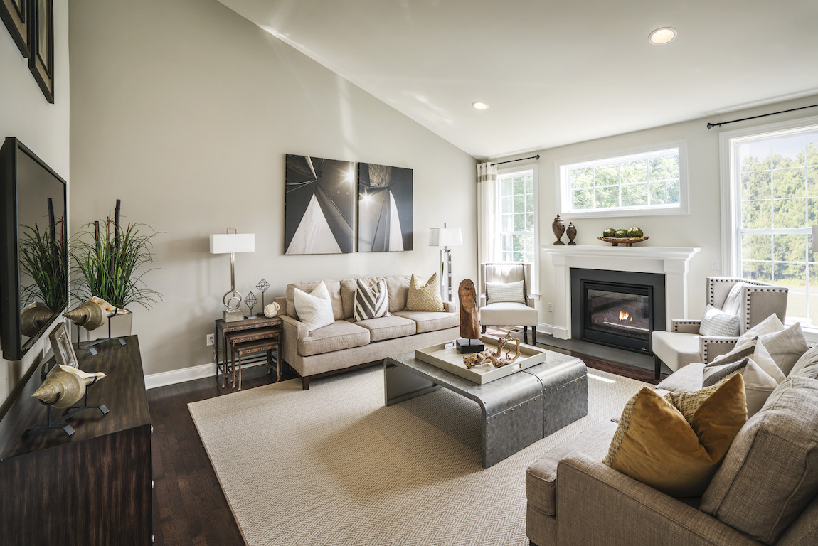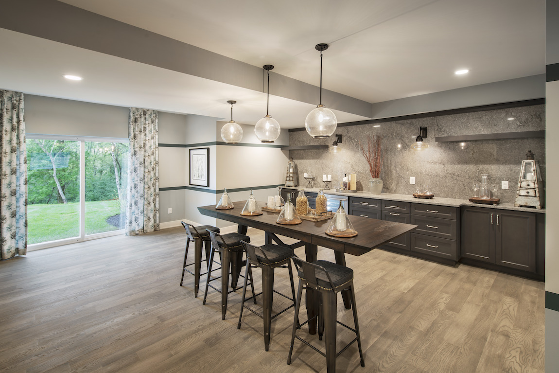 Well-designed, contemporary living. The Gaffney’s foyer opens onto the bright dining room and great room, overlooking the well-equipped kitchen complete with large center island with breakfast bar, plenty of counter and cabinet space, and roomy pantry.