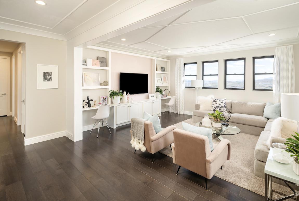 The Ashbury’s foyer opens to a comfortable flex space, great for hobbies, family entertainment or gaming. And the spacious primary bedroom features a large walk-in closet and a primary bath with a dual-sink vanity and luxe shower with a seat.