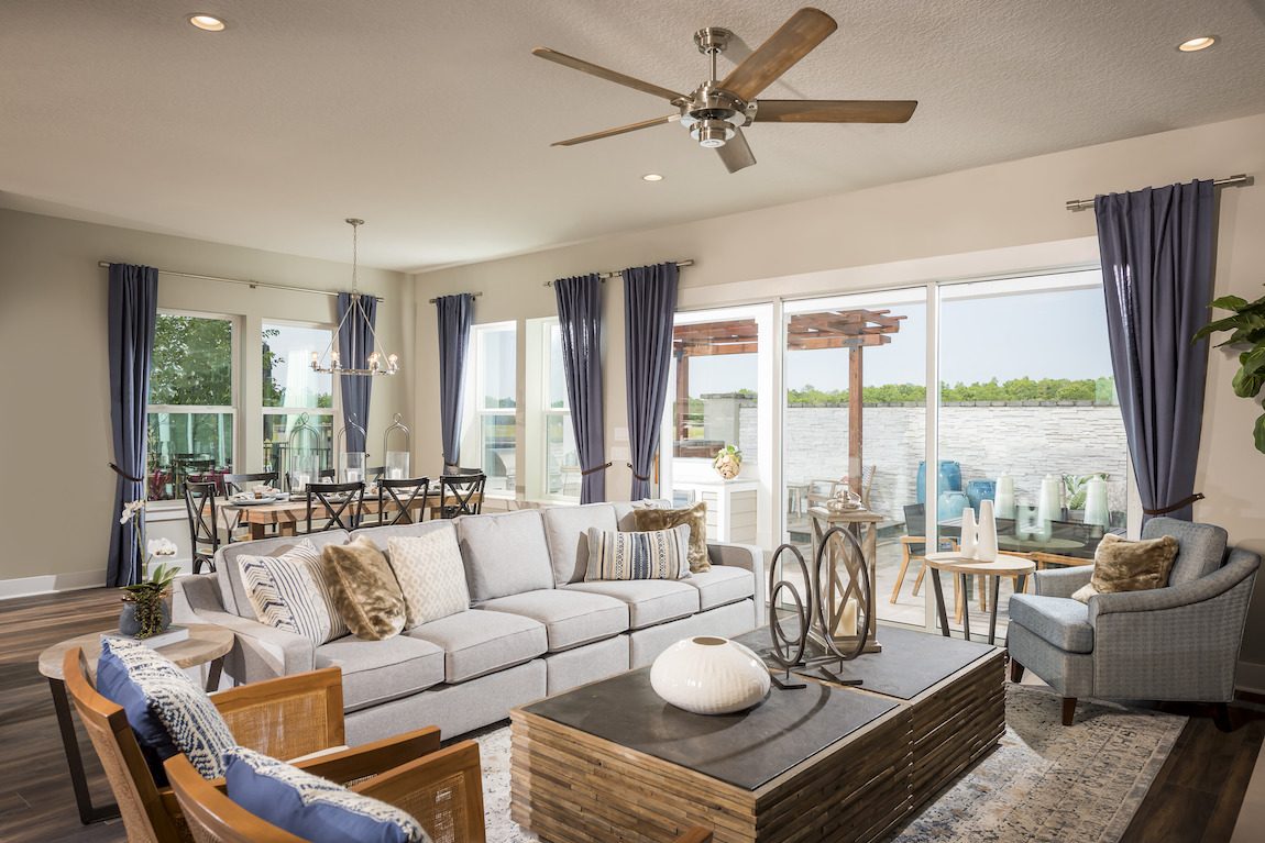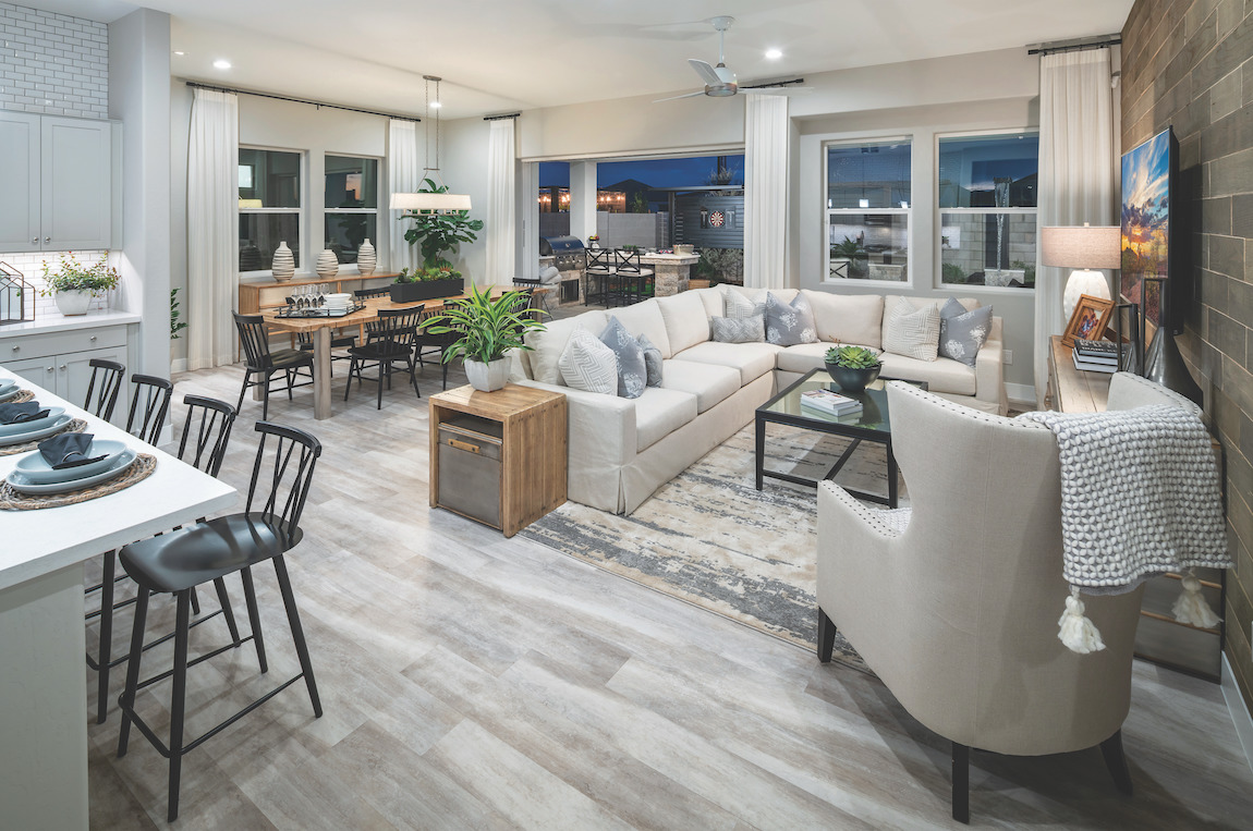 The Sandstone features a bright and open floor plan with an expansive sliding door system and a huge covered patio.