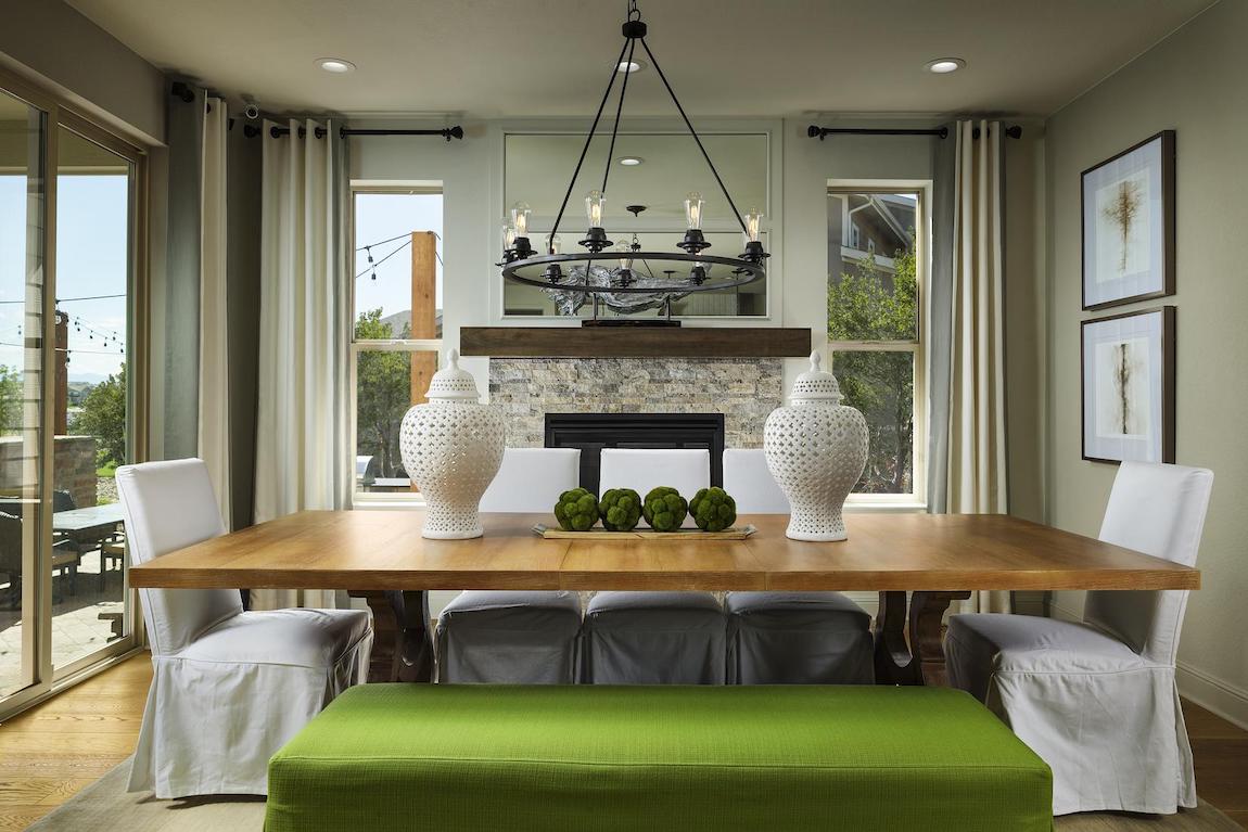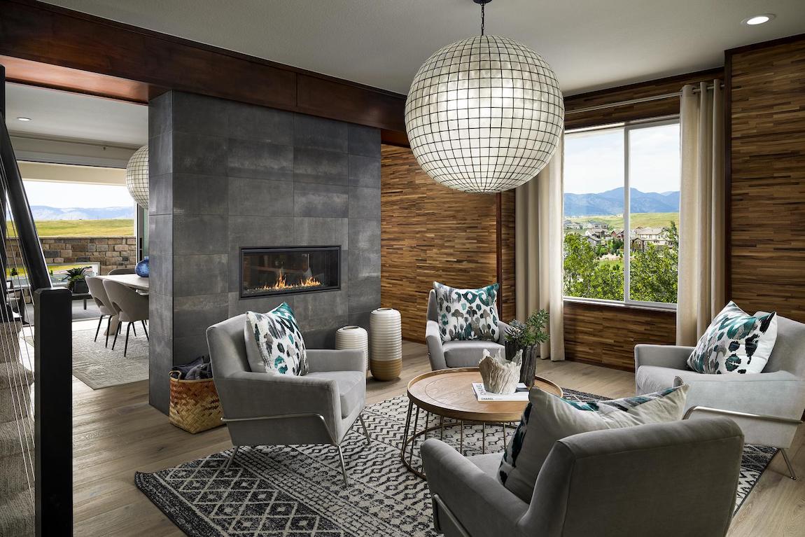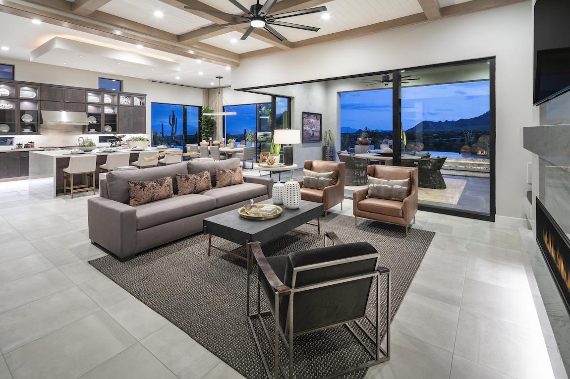 The Crestone’s enormous, bright windows provide natural light to the captivating great room, which features a magnificent fireplace and views straight through to the spacious rear covered patio.