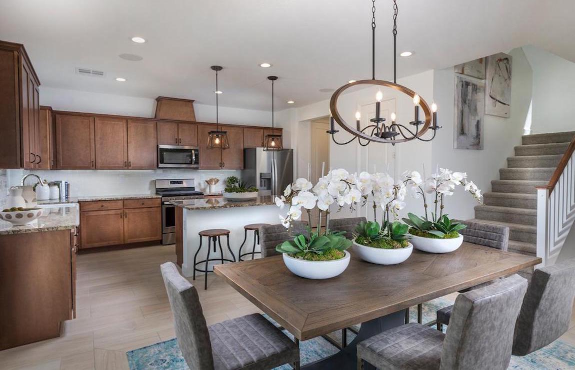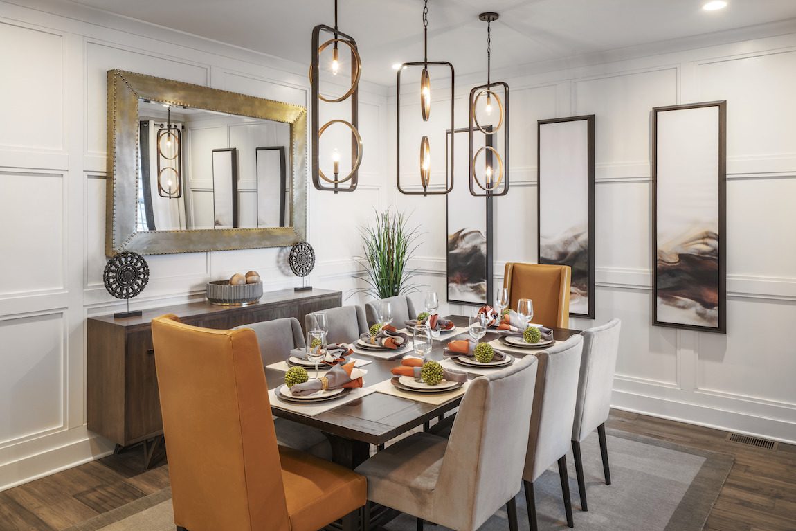 The Corbett is an end residence townhome with a side entrance that opens to the large dining and family room spaces.