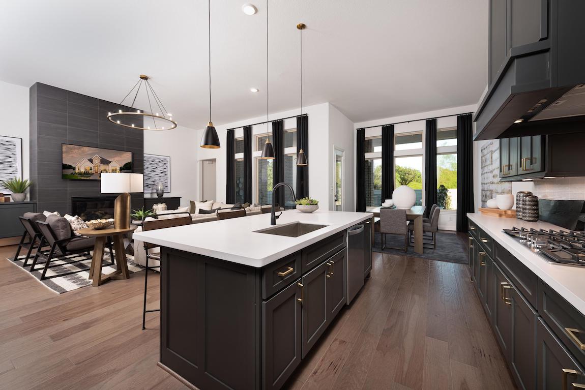 With a touch of modern luxury, the Norton’s inviting foyer opens to the turned staircase and has a view of the open concept living space. The well-appointed gourmet kitchen features a large center island with a breakfast bar, ample counter and cabinet space, roomy walk-in pantry along with a sunny breakfast area with covered patio access.
