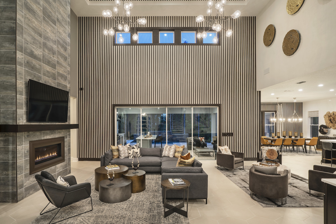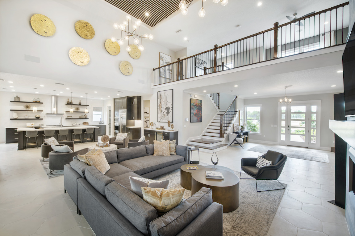 Luxe touches. The Blackwell’s soaring two-story foyer opens onto the expansive great room and desirable covered lanai beyond