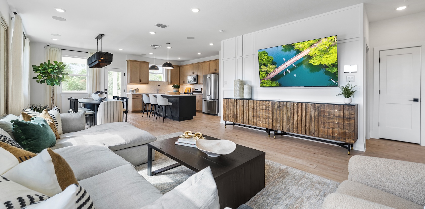 The Bungalows Collection offered at Nolyn Pointe by Toll Brothers features thoughtfully designed luxury homes with open floor plans and modern details. Home buyers will enjoy expansive three-story home designs with luxurious primary bedroom suites, well-designed gourmet kitchens with large islands, and high-end interior finishes. Homes include 4 bedrooms, 3.5 baths, 2-car garages, and over 2,700 square feet of luxury living space. Homes are priced from the upper $500,000s.