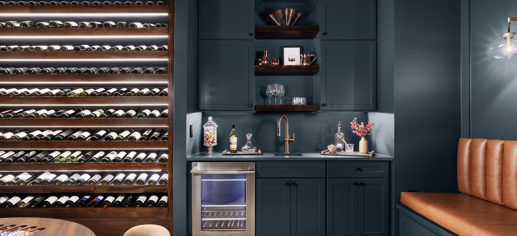 Home bars continue to be a popular feature in modern home designs, providing a fun space for entertaining, family time, and personal relaxation alike. Home bars can also serve to elevate the décor of your home with a personalized design that reflects your unique style. Depending on your lifestyle needs and design preferences, there are many areas in your home that are perfect for a home bar.