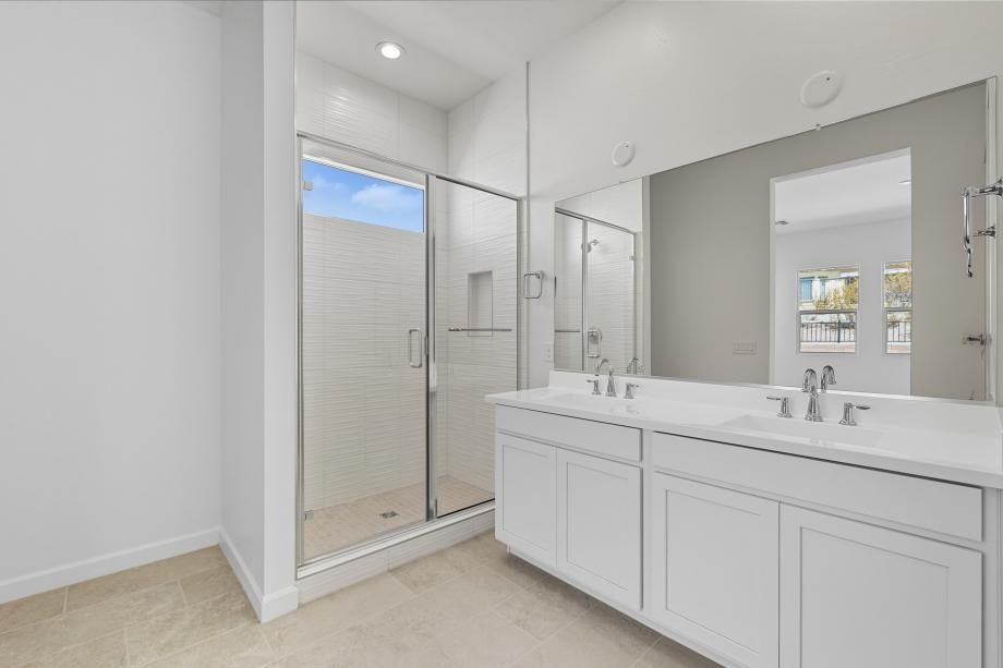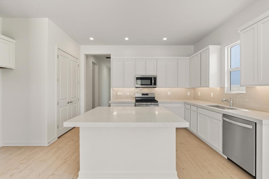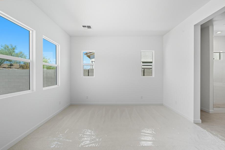 Impressive urban appointments. The Chapin's inviting covered entry and welcoming foyer hallway flow into the expansive great room, casual dining area, and desirable covered patio beyond. The well-designed gourmet kitchen is highlighted by a large center island with a breakfast bar, plenty of counter and cabinet space, and a generous pantry. The gracious primary bedroom suite is complete with an enormous walk-in closet and spa-like primary bath with a dual-sink vanity, large luxe shower, and private water closet. Secondary bedrooms feature roomy closets and access to two shared hall baths, one with a separate dual-sink vanity area. Additional highlights include a desirable office off the foyer and centrally located laundry.