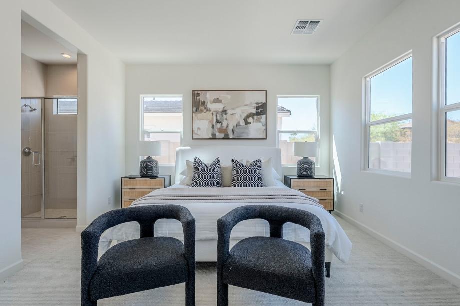 The Cordova's welcoming covered entry and inviting foyer reveal views to the spacious great room, casual dining area, and desirable covered patio beyond. The well-equipped gourmet kitchen is enhanced by a large center island with a breakfast bar, plenty of counter and cabinet space, and a sizable walk-in pantry. The secluded primary bedroom suite is highlighted by a generous walk-in closet and spa-like primary bath with dual-sink vanity, large luxe shower, and private water closet. Ample secondary bedrooms feature roomy closets and a shared hall bath with a separate dual-sink vanity area. Additional highlights include centrally located laundry and additional storage.