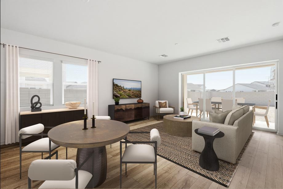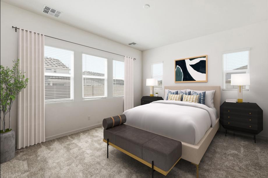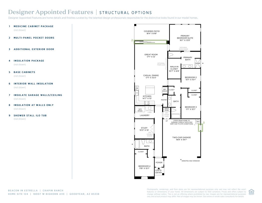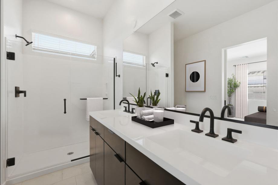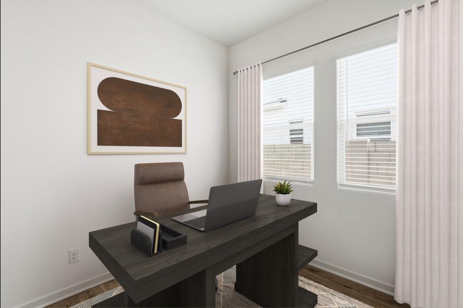 Impressive urban appointments. The Chapin's inviting covered entry and welcoming foyer hallway flow into the expansive great room, casual dining area, and desirable covered patio beyond. The well-designed gourmet kitchen is highlighted by a large center island with breakfast bar, plenty of counter and cabinet space, and generous pantry. The gracious primary bedroom suite is complete with an enormous walk-in closet and spa-like primary bath with dual-sink vanity, large luxe shower, and private water closet. Secondary bedrooms feature roomy closets and access to two shared hall baths, one with separate dual-sink vanity area. Additional highlights include a desirable office off the foyer, and centrally located laundry.