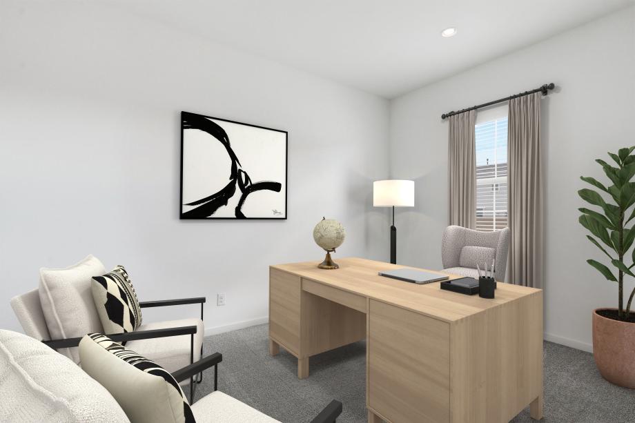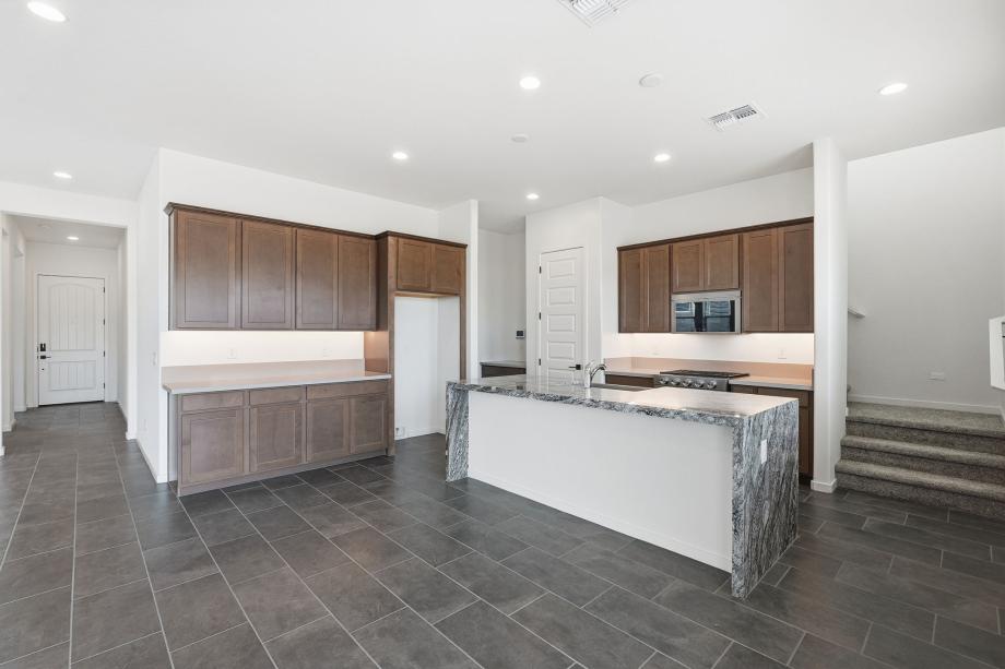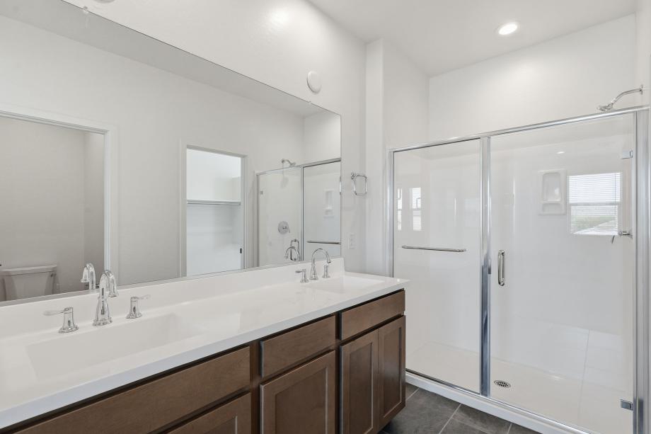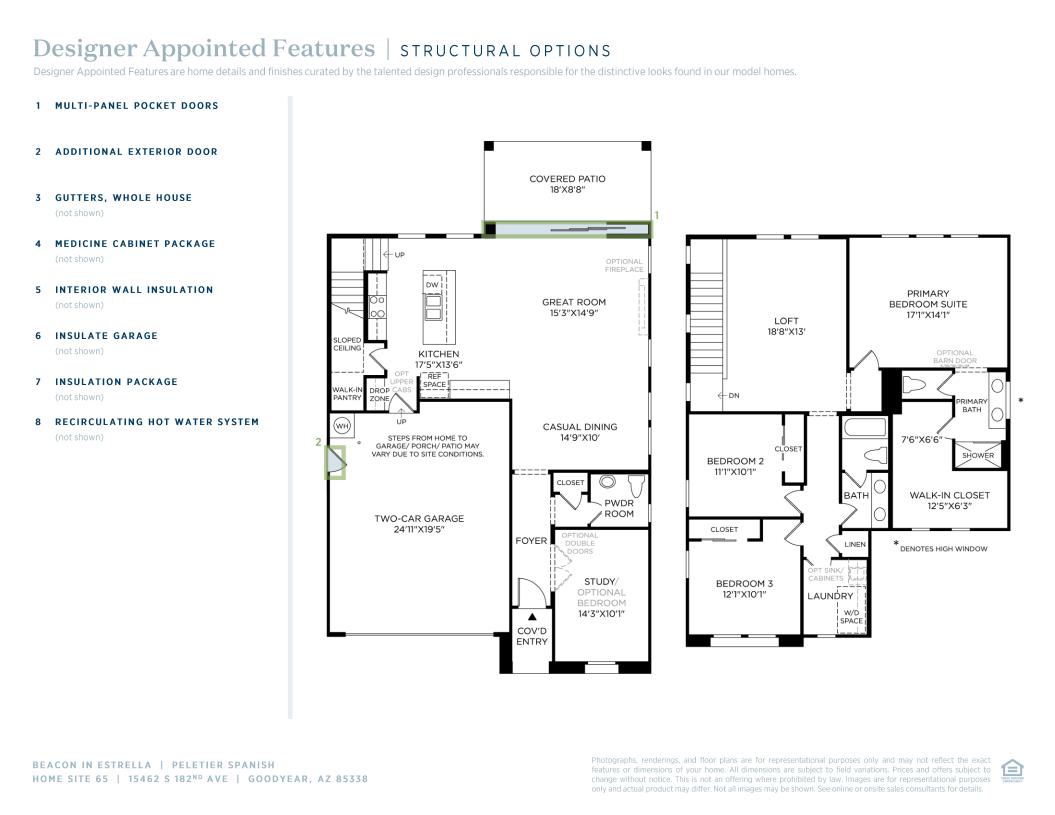Charming style and appointments. The Peletier's inviting covered entry and welcoming foyer flow into the spacious great room and casual dining area, with views to the desirable covered patio beyond. The well-designed gourmet kitchen is equipped with a large center island with breakfast bar, plenty of counter and cabinet space, and roomy walk-in pantry. The lovely primary bedroom suite is complete with an enormous walk-in closet and spa-like primary bath with dual-sink vanity, large luxe shower, and private water closet. Sizable secondary bedrooms feature generous closets and shared hall bath with separate dual-sink vanity area. Additional highlights include a convenient powder room, centrally located laundry, and additional storage.