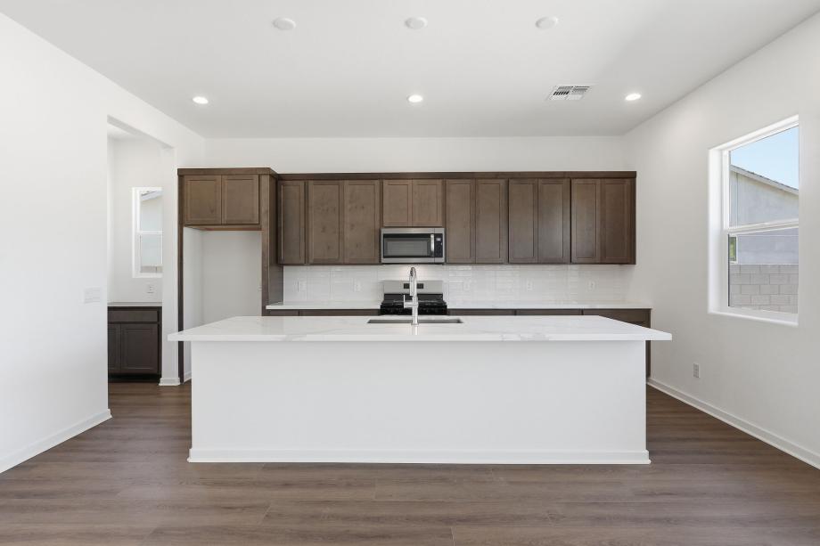 Well-designed family style. The Laurens' inviting covered entry and welcoming foyer flow past a bright office to views of the spacious great room, casual dining area, and desirable covered patio beyond. The well-equipped gourmet kitchen is highlighted by a large center island with breakfast bar, plenty of counter and cabinet space, and roomy walk-in pantry. The serene primary bedroom suite is enhanced by a sizable walk-in closet and spa-like primary bath with dual-sink vanity, large luxe shower, and private water closet. Generous secondary bedrooms feature ample closets and shared hall bath with separate dual-sink vanity area. Additional highlights include a convenient powder room, centrally located laundry, and additional storage.