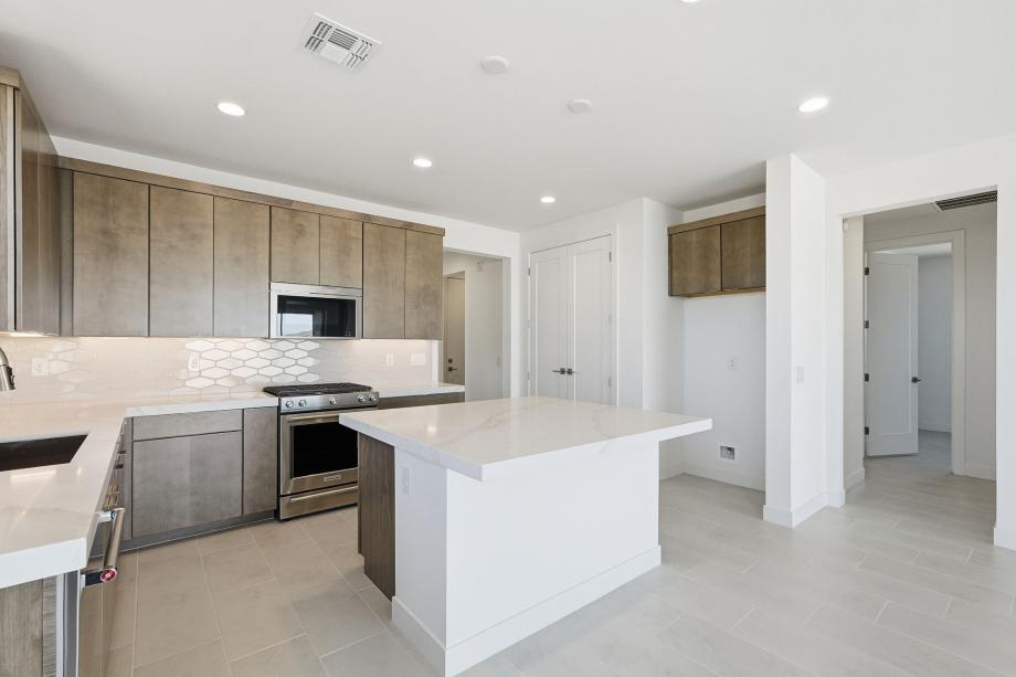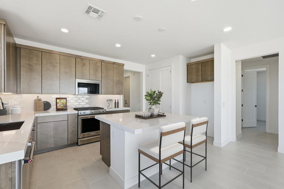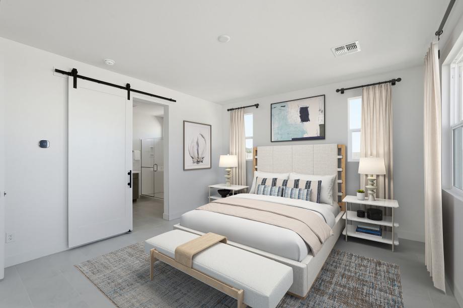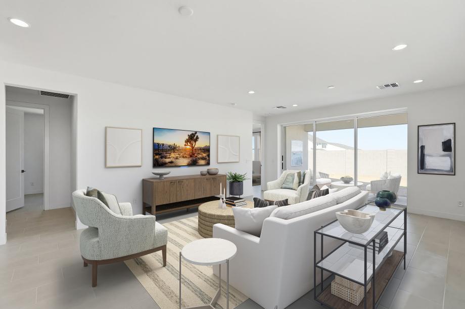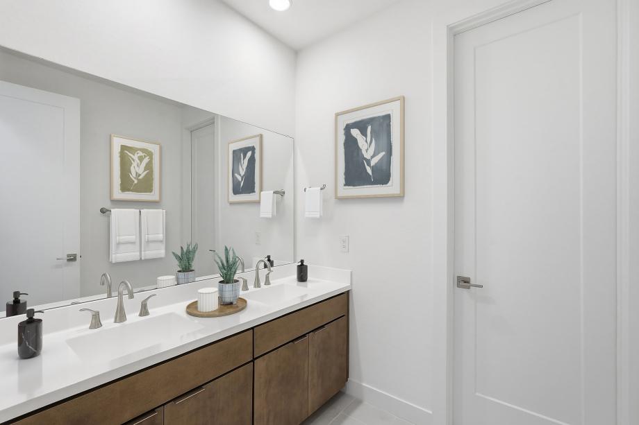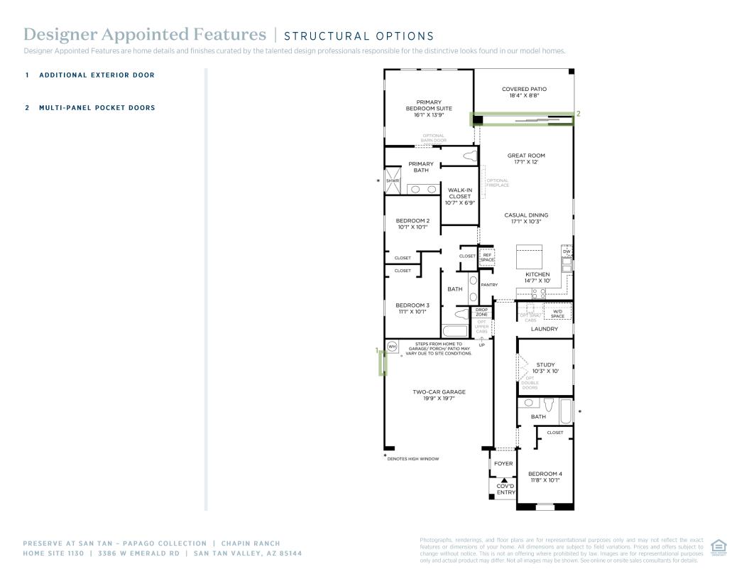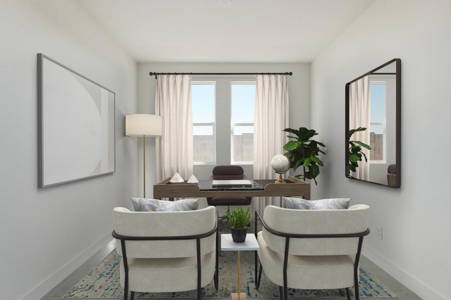 Impressive urban appointments. The Chapin's inviting covered entry and welcoming foyer hallway flow into the expansive great room, casual dining area, and desirable covered patio beyond. The well-designed gourmet kitchen is highlighted by a large center island with breakfast bar, plenty of counter and cabinet space, and generous pantry. The gracious primary bedroom suite is complete with an enormous walk-in closet and spa-like primary bath with dual-sink vanity, large luxe shower, and private water closet. Secondary bedrooms feature roomy closets and access to two shared hall baths, one with separate dual-sink vanity area. Additional highlights include a desirable office off the foyer, and centrally located laundry.
