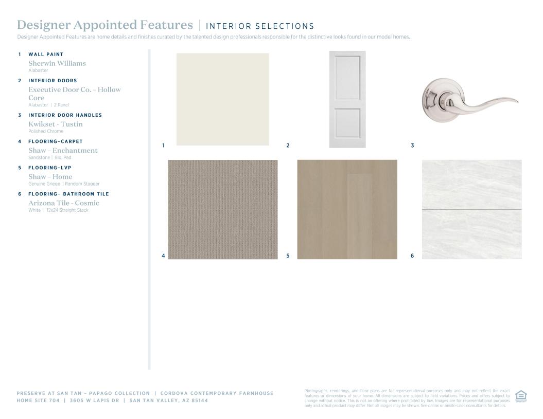 The Cordova's welcoming covered entry and inviting foyer reveal views to the spacious great room, casual dining area, and desirable covered patio beyond. The well-equipped gourmet kitchen is enhanced by a large center island with breakfast bar, plenty of counter and cabinet space, and sizable walk-in pantry. The secluded primary bedroom suite is highlighted by a generous walk-in closet and spa-like primary bath with dual-sink vanity, large luxe shower, and private water closet. Ample secondary bedrooms feature roomy closets and shared hall bath with separate dual-sink vanity area. Additional highlights include centrally located laundry and additional storage.
