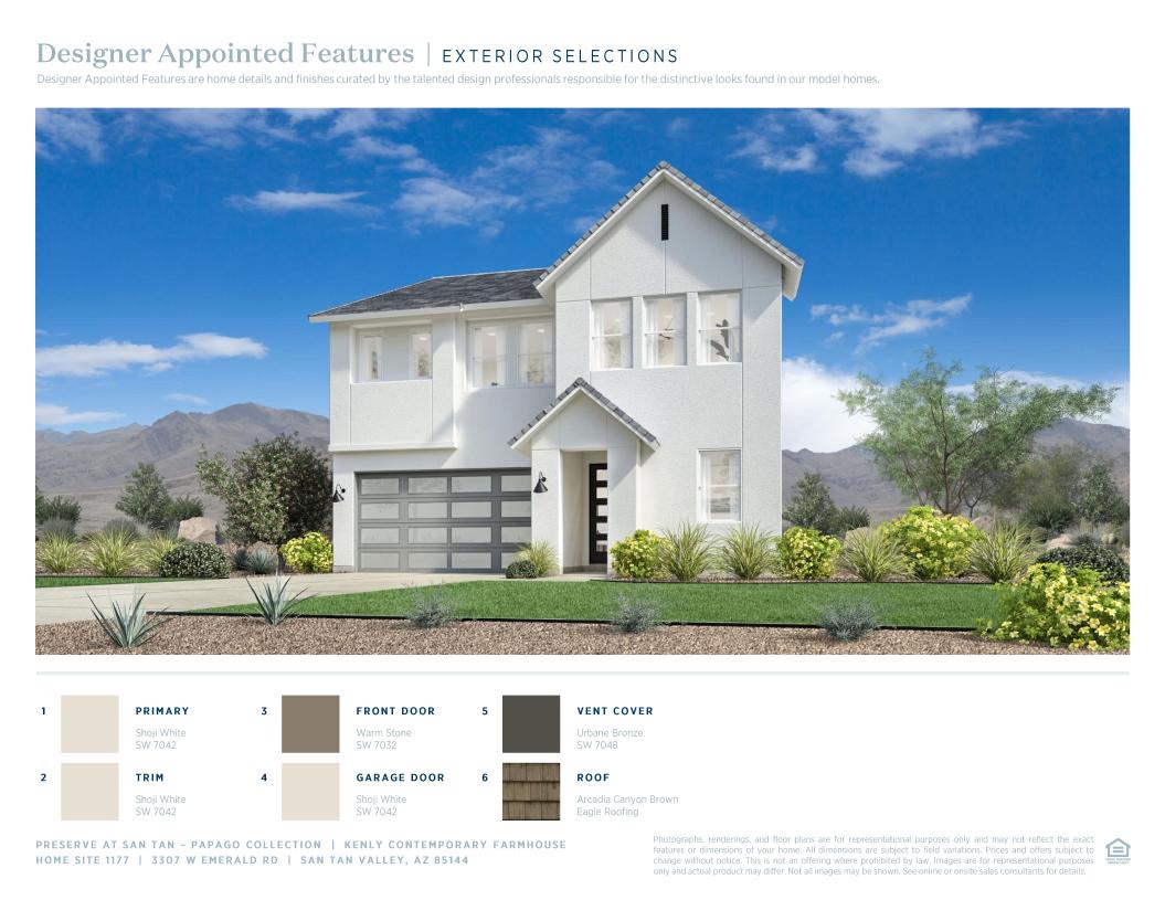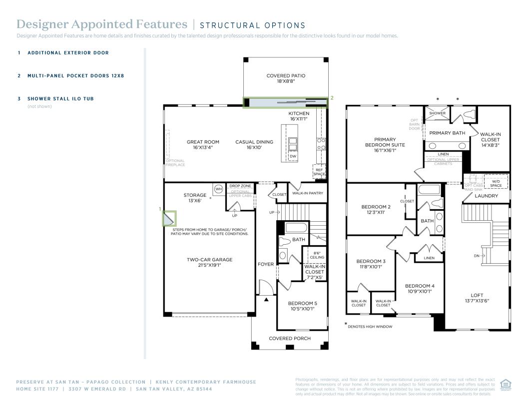Modern family deluxe. The Kenly's welcoming extended covered porch and inviting foyer hallway flow right into the spacious great room and bright casual dining area, with views to the desirable covered patio beyond. The well-designed gourmet kitchen is equipped with a large center island with breakfast bar, plenty of counter and cabinet space, and ample walk-in pantry. The superb primary bedroom suite is complete with a king-size walk-in closet and spa-like primary bath with dual-sink vanity, large luxe shower, and private water closet. Central to a generous loft, secondary bedrooms feature sizable closets and shared hall bath with separate dual-sink vanity area. Additional highlights include a versatile office, convenient powder room, centrally located laundry, and additional storage.