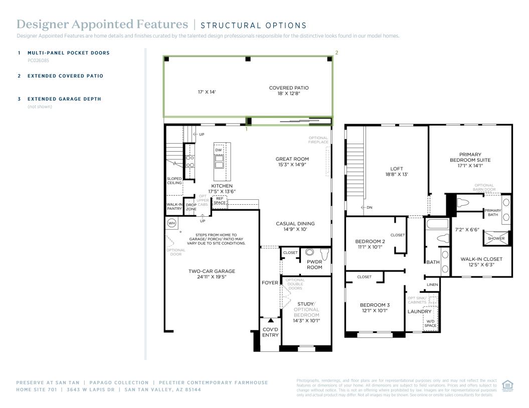 Enjoy the rustic charm of a farmhouse with contemporary design elements in this Peletier floor plan. Every detail was carefully curated with you in mind. The open concept layout is ideal for entertaining; whether you are gathered at the kitchen island or in the great room, you will feel at home. The great room offers direct access to the covered patio, which creates seamless indoor/outdoor living. As you make your way upstairs, you can also enjoy the spacious loft for a game room or the ultimate movie night setup. Also located on the second floor are the bedrooms, for ease and convenience. The primary bedroom features a spa-inspired bathroom and walk-in closet. The additional bedrooms are great for accommodating guests or family. Don't miss your chance to make this home yours!