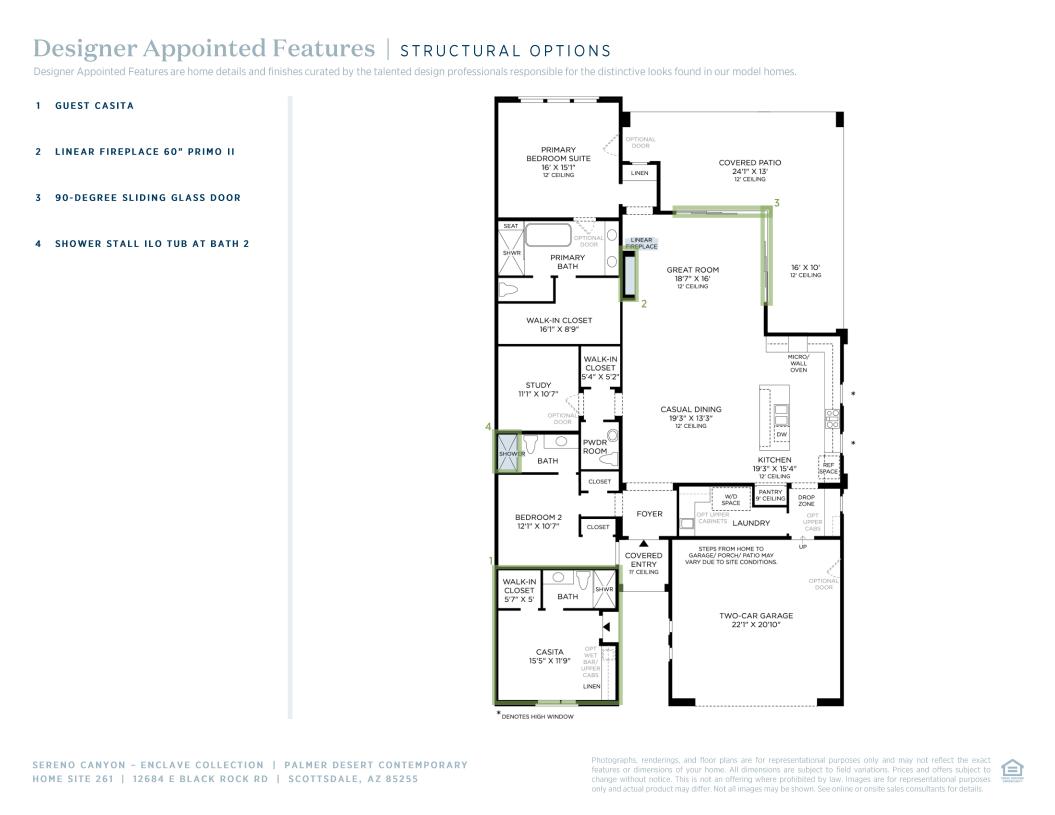Cozy comfort and thoughtful luxury define the Palmer home design. Upon entering through the covered entry, you're greeted by a welcoming foyer that leads to an expansive open-concept living area. A casual dining space seamlessly connects with a gourmet kitchen, and stunning great room, ideal for daily living or entertaining. The well-appointed kitchen features a center island with a breakfast bar and a convenient pantry. The primary bedroom is highlighted by a spacious walk-in closet and a luxurious bath with a dual-sink vanity, a soaking tub, a relaxing shower, and a private water closet. A secondary bedroom offers ample walk-in closet space and a full personal bath for comfort and privacy. Additional features include a dedicated study, a covered patio for indoor-outdoor entertaining, a powder room, a drop zone, and a two-car garage.