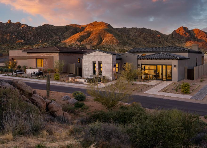 The Villa Collection offers single-level luxury living with access to the master plan resort-style amenities. Featuring Modern, Modern Ranch, Spanish Contemporary and Desert Contemporary architecture, these homes have up to five bedrooms and bathrooms and two to three bay garages.