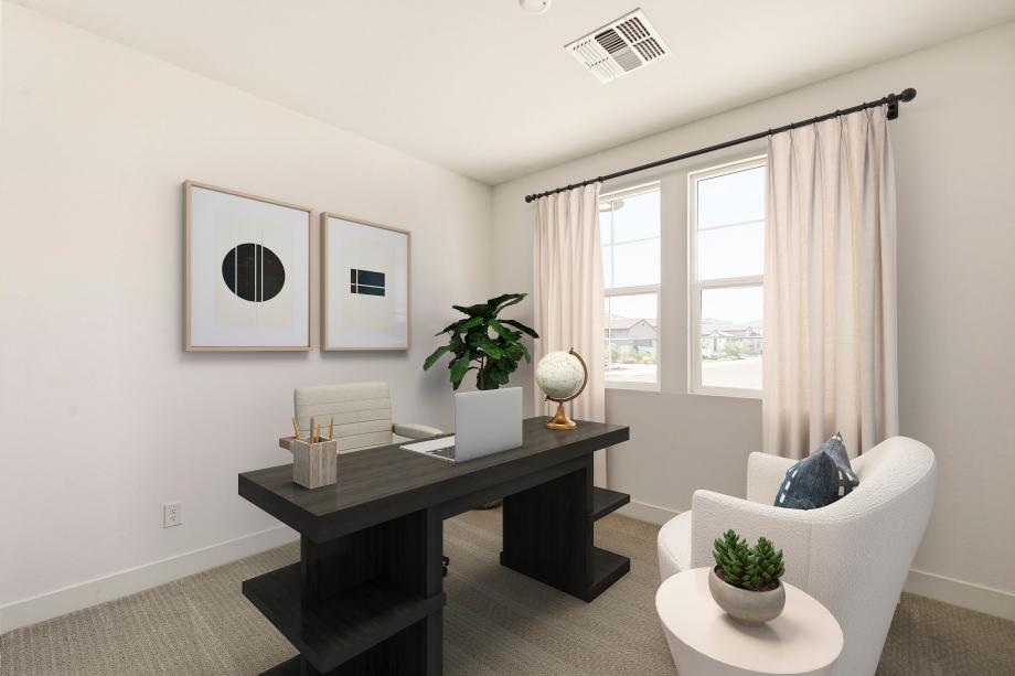 This spacious single-story design is sure to meet your needs. From the inviting entry to the free-flowing layout, no detail was overlooked. Featuring four bedrooms and an office, this home is perfect for family or friends. The kitchen includes an island and a walk-in pantry for extra storage. The open great room allows for easy indoor/outdoor living. As an added bonus, this home also includes a centrally located laundry room, making chores a breeze. The primary bedroom suite features a walk-in closet and a dual-sink vanity, while the additional bedrooms are sure to make your guests feel right at home.