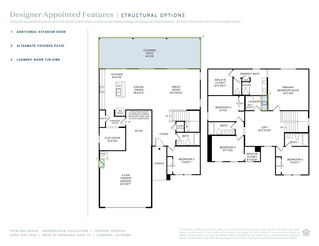 The Windrose home design features an inviting open floor plan that blends elegance and functionality. From the charming wraparound porch, the foyer welcomes you into a spacious great room that flows into the casual dining area and a well-appointed kitchen. The kitchen is designed for both daily living and entertaining, with an expansive center island, a walk-in pantry, and a nearby workspace. A covered patio just off the kitchen extends the living space outdoors, offering the perfect setting for fresh-air gatherings. A secondary bedroom on the main level has access to a full hall bath, providing a private space for guests or extended stays. Upstairs, the serene primary suite offers a generous walk-in closet and a spa-inspired bath with a dual-sink vanity, a luxurious shower, and a private water closet. Three additional secondary bedrooms, one with a private bath and two sharing a hall bath, surround a versatile loft, creating flexible living space for family and guests. Additional features include a centrally located second-floor laundry room, an everyday entry, and ample storage throughout.