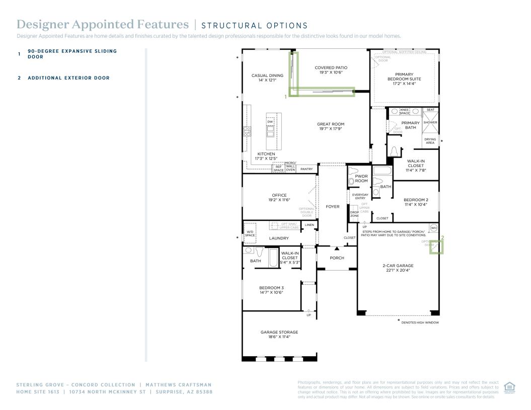 Deluxe contemporary family living. The Matthews' inviting covered entry and welcoming foyer open onto a bright office, and to views of the spacious great room, casual dining area, and desirable covered patio beyond. The well-designed kitchen is equipped with a large center island with breakfast bar, plenty of counter and cabinet space, and ample pantry. The secluded primary bedroom suite is enhanced by a generous walk-in closet and spa-like primary bath with dual-sink vanity, luxe glass-enclosed shower with seat and drying area, and private water closet. Secondary bedrooms feature roomy closets and private full baths. Additional highlights include a convenient powder room and drop zone, centrally located laundry, and sizable storage space off the foyer.
