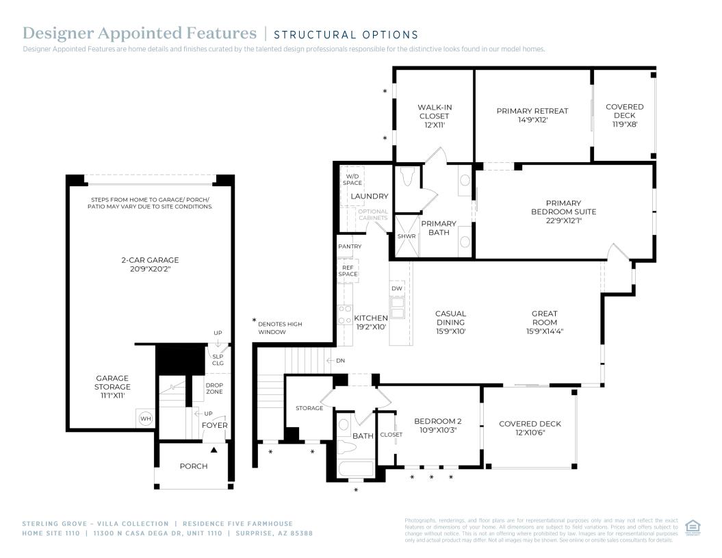 Featuring an expertly designed floor plan with luxurious outdoor spaces, Residence Five offers exceptional living. An intimate foyer with stairs flows up to an inviting casual dining area and palatial great room that provides desirable access to an outdoor covered deck. The beautifully crafted kitchen overlooks the main living space and is complemented by ample counter and cabinet space, a spacious breakfast bar, as well as a roomy pantry. Tucked away off the great room, the elegant primary bedroom suite is highlighted by an expansive primary retreat with a private covered deck, as well as a spacious walk-in closet and a spa-like primary bath complete with a deluxe shower, dual vanities, and a private water closet. A sizable secondary bedroom offers a sizable closet and a shared hall bath. Also offered in Residence Five is a centrally located laundry, an everyday entry with drop zone, and plenty of storage throughout.